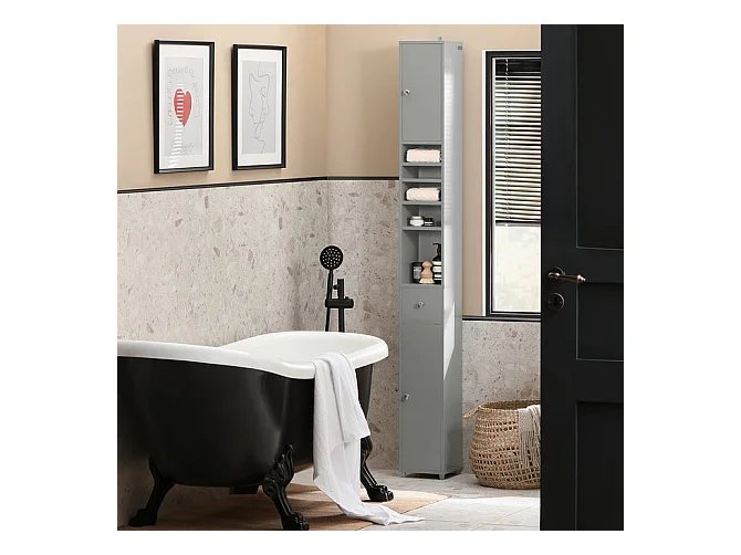 Meuble De Rangement Salle D Bain Meuble Colonne Armoire De Toilette Meuble Wc Gris, BZr34-hg