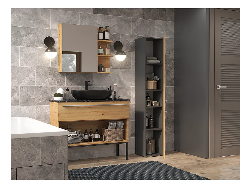 Meuble de salle de bain, Anthracite / Chêne Artisan, 30 x 174 x 30 cm