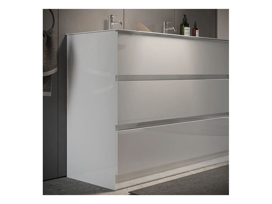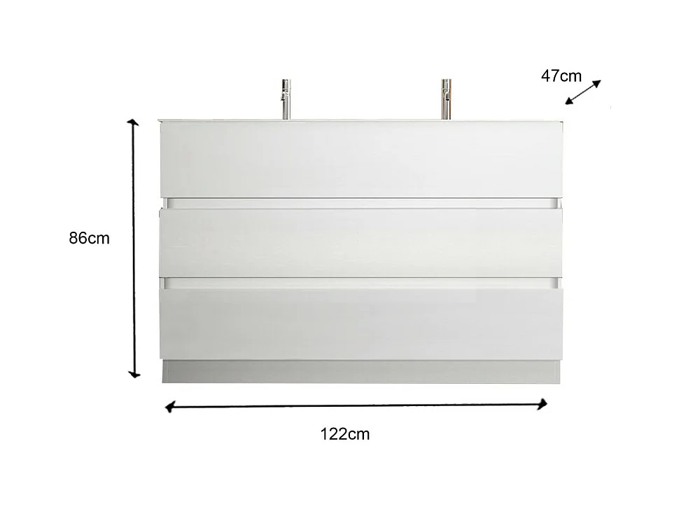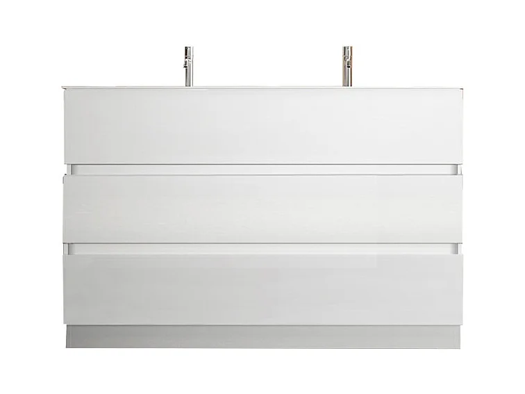 Meuble de salle de bain avec deux vasques et 3 tiroirs, collection VIENNE. Coloris blanc brillant