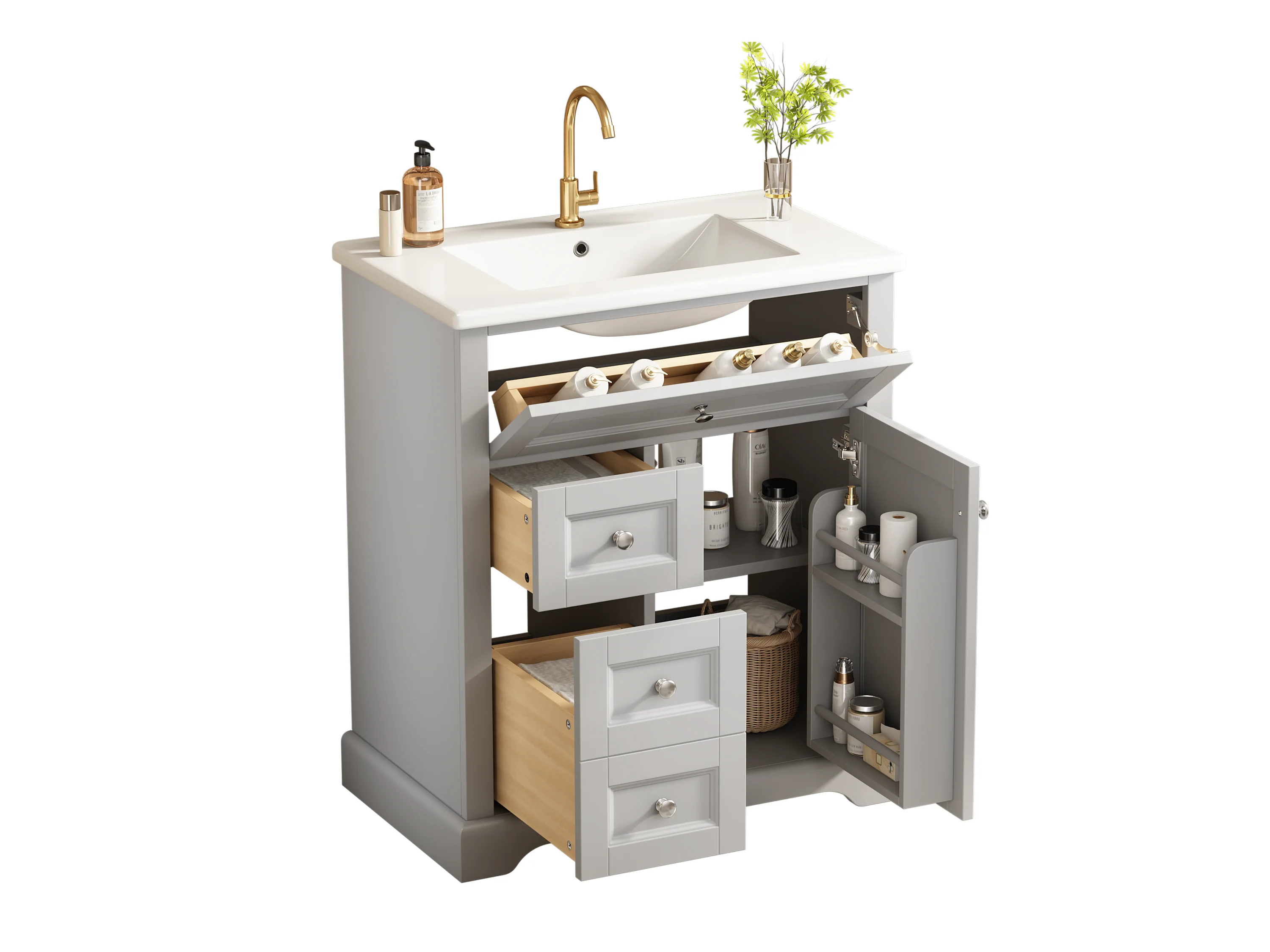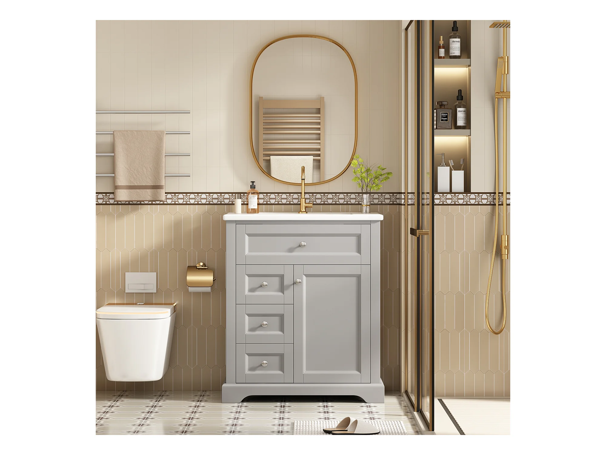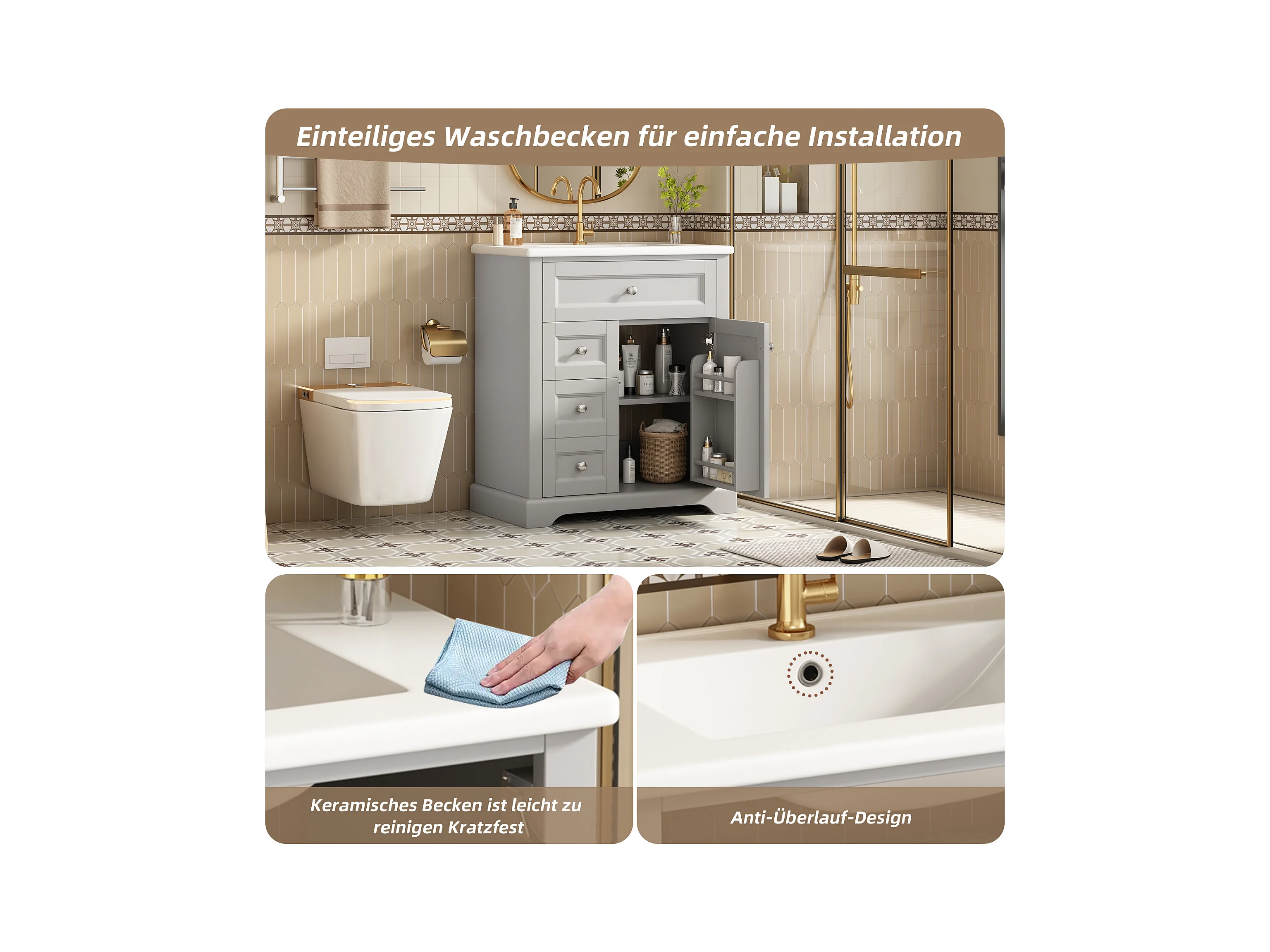 Meuble de salle de bain avec lavabo, peinture résistante à l'humidité, tiroirs à fermeture douce, étagères réglables, gris, (76x46x87 cm)