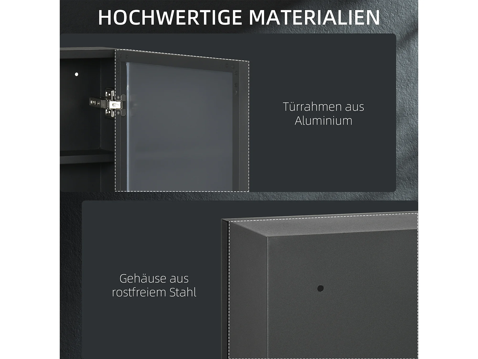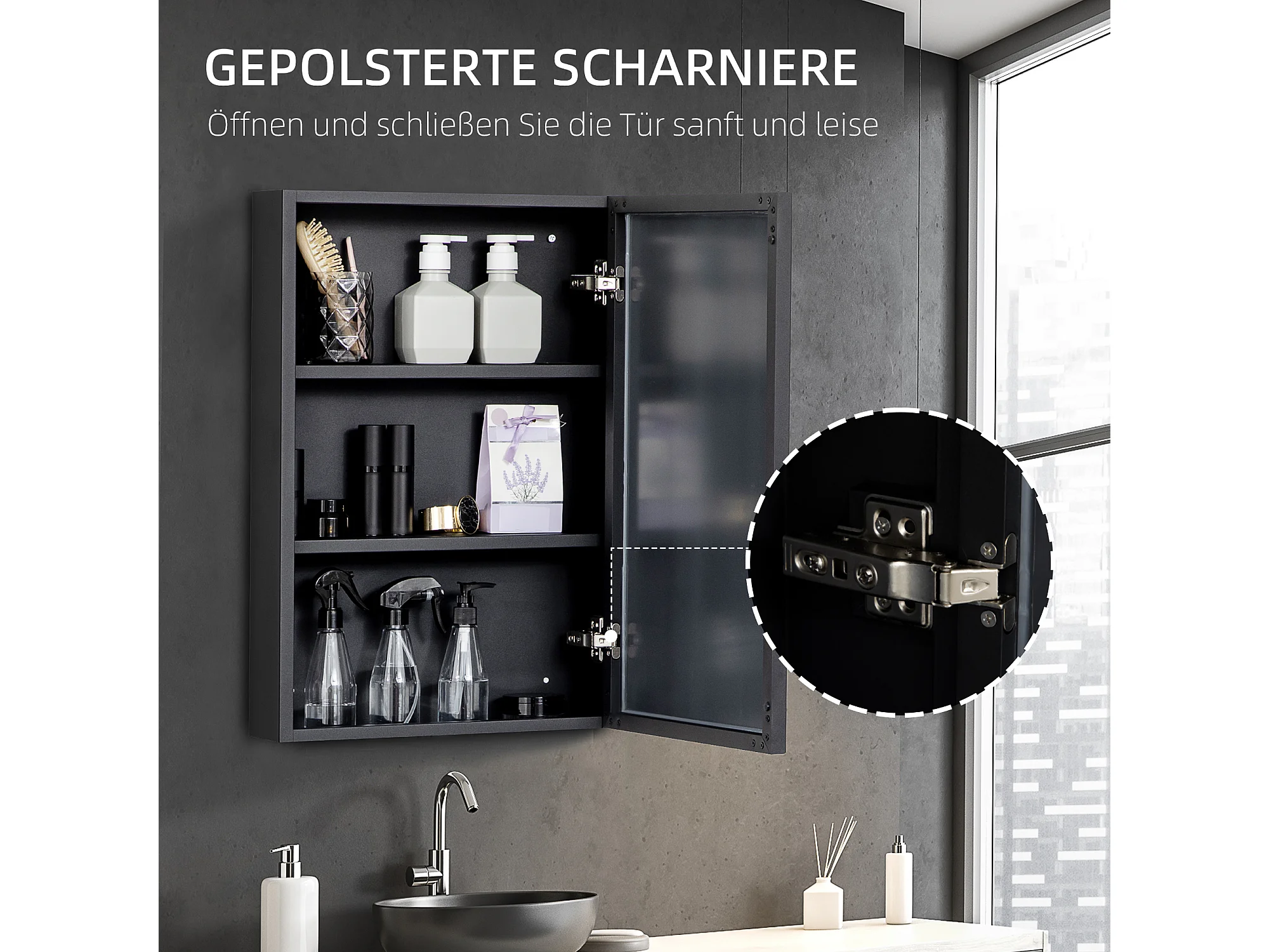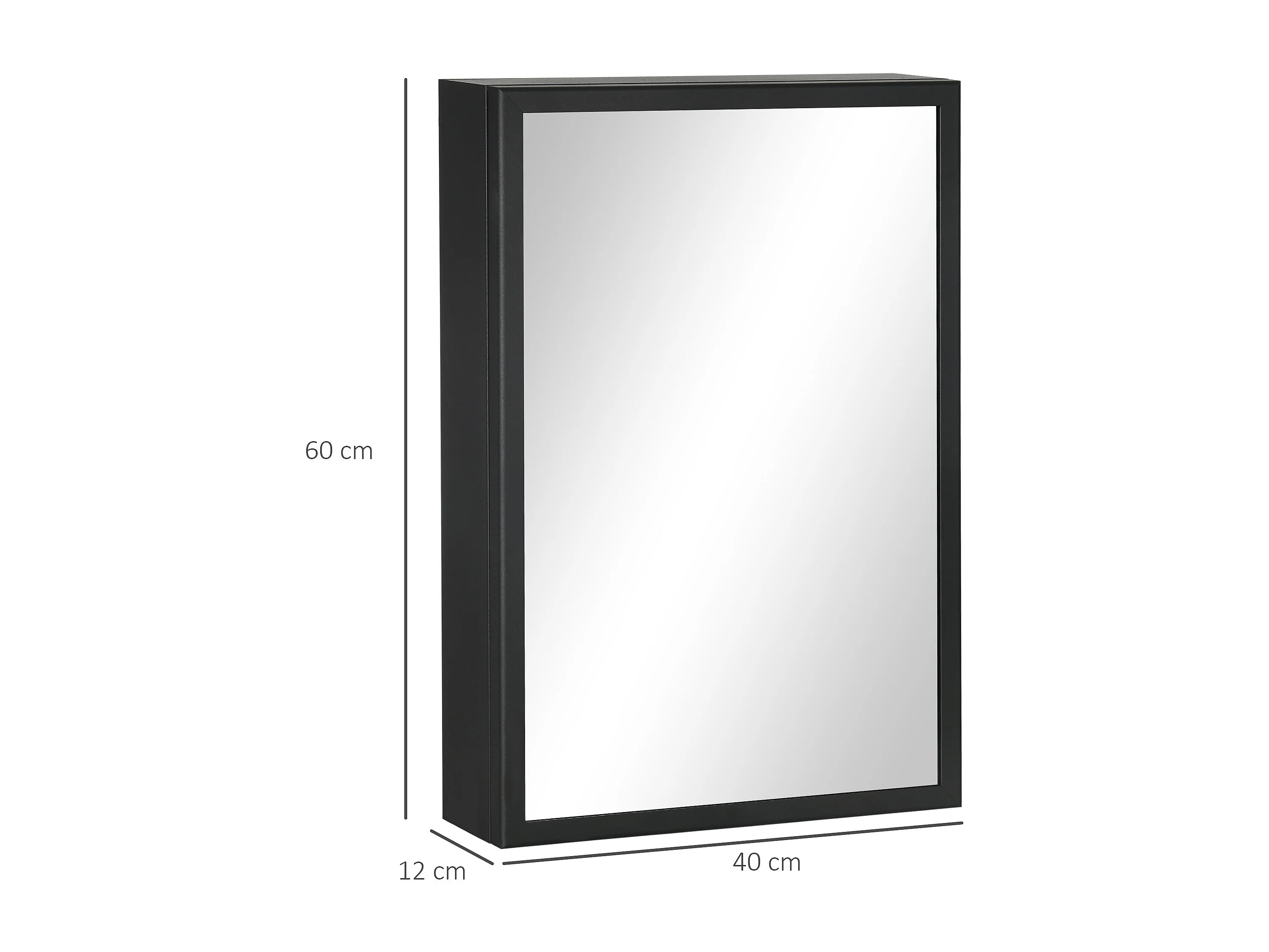 Armoire miroir de salle de bain avec étagères, acier inoxydable, noir (46x13.5x58 cm)