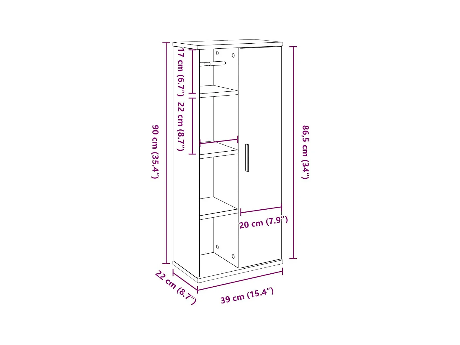 Meuble de salle de bain avec porte-rouleau blanc 39x22x90 cm