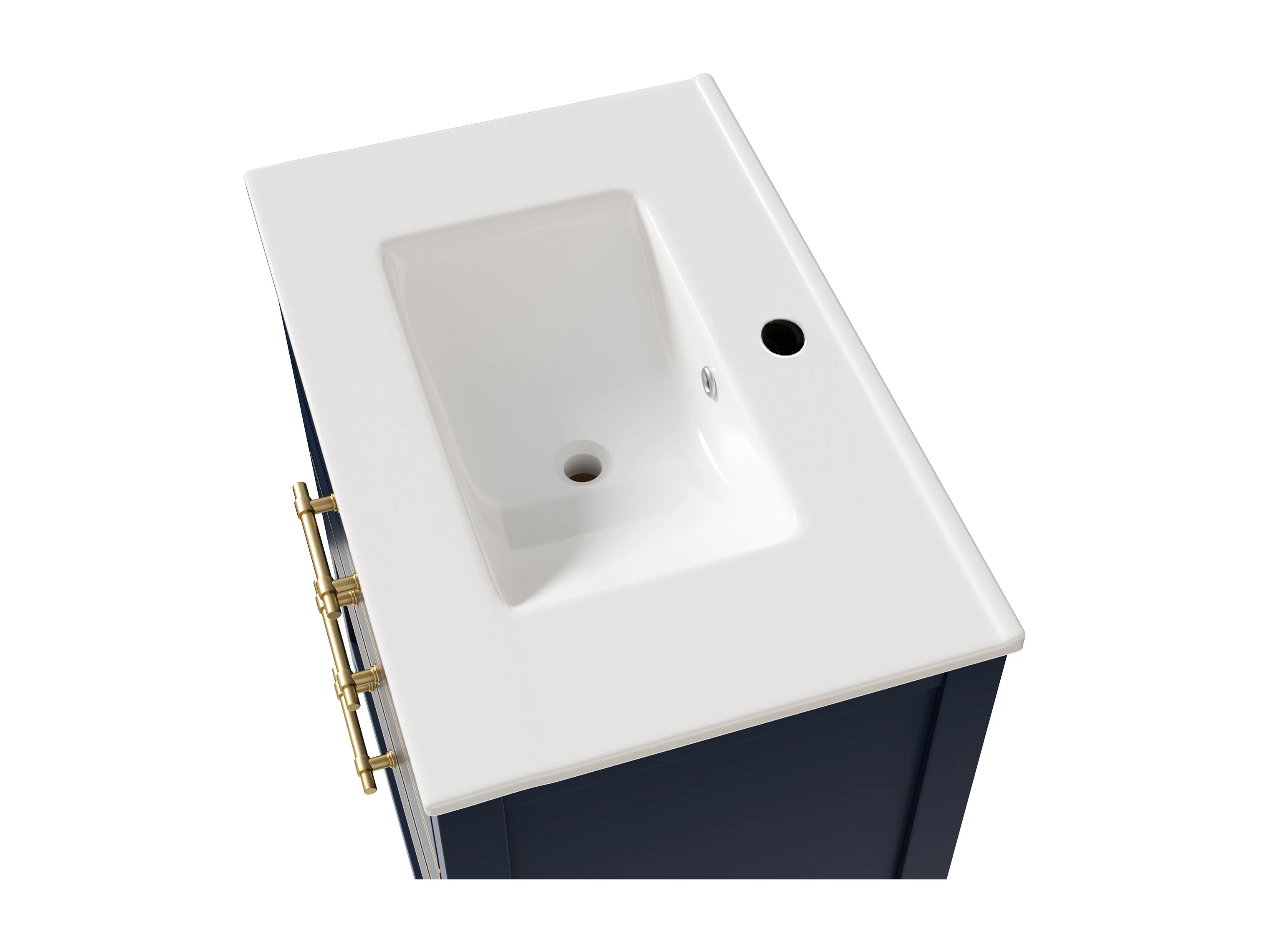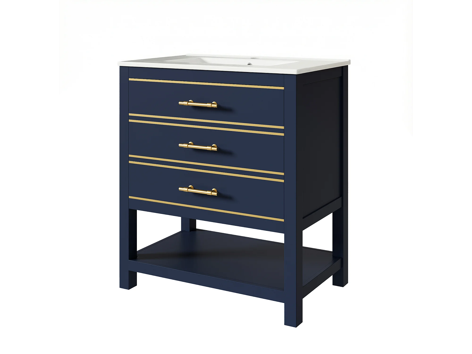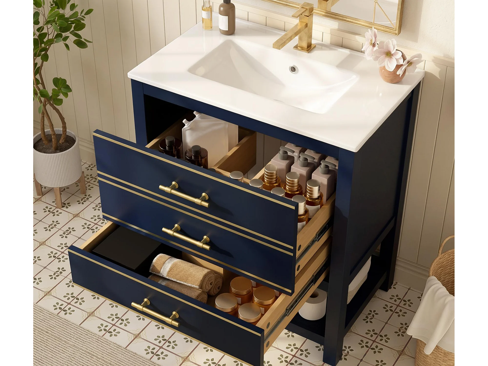 Meuble de salle de bain - avec une vasque en céramique - avec 2 tiroirs et 1 compartiment ouvert - bleu (robinet non inclus)