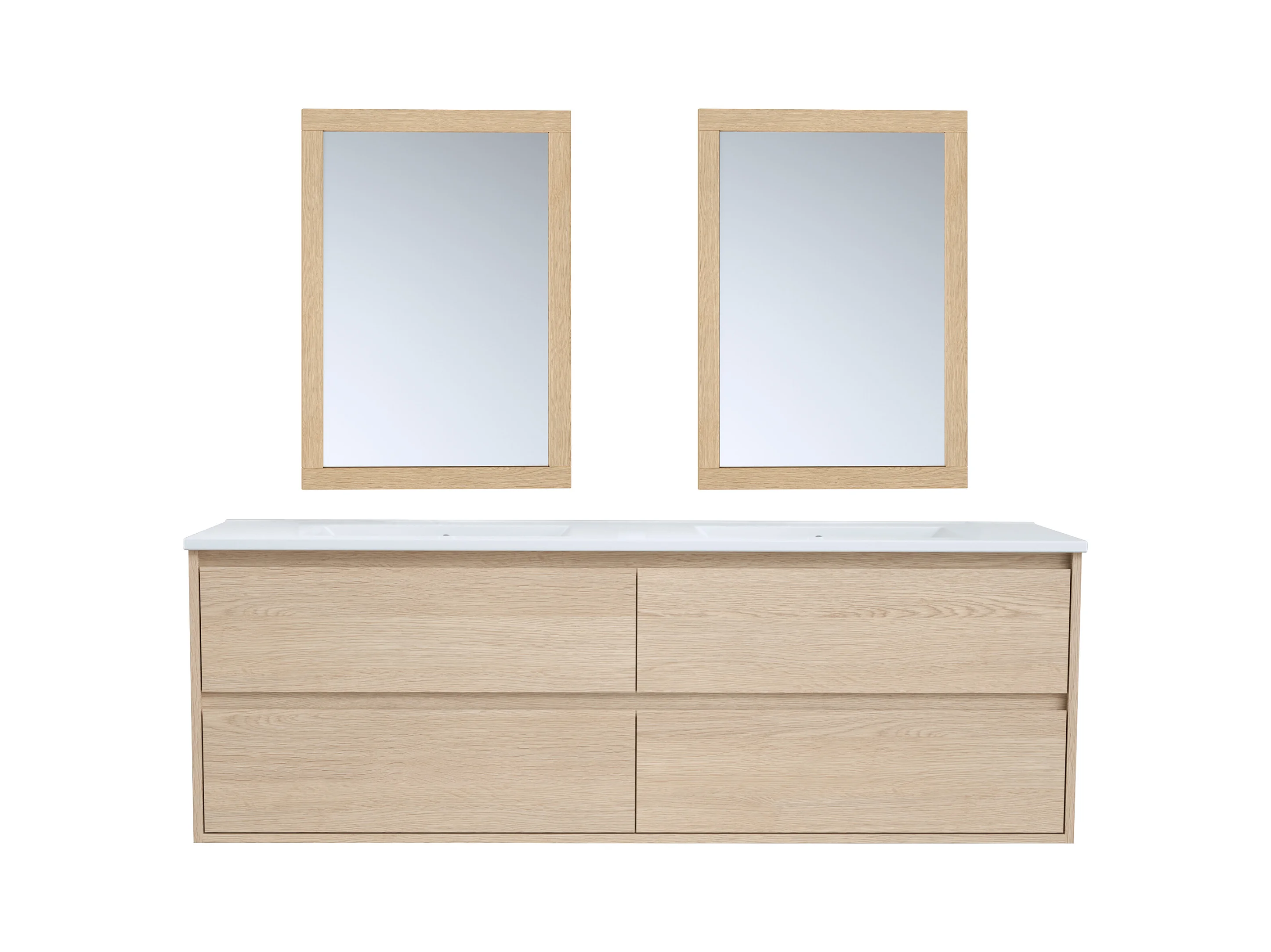 Meuble de salle de bain avec vasque à encastrer et miroir - Placage chêne - 150 cm - MILIPAM