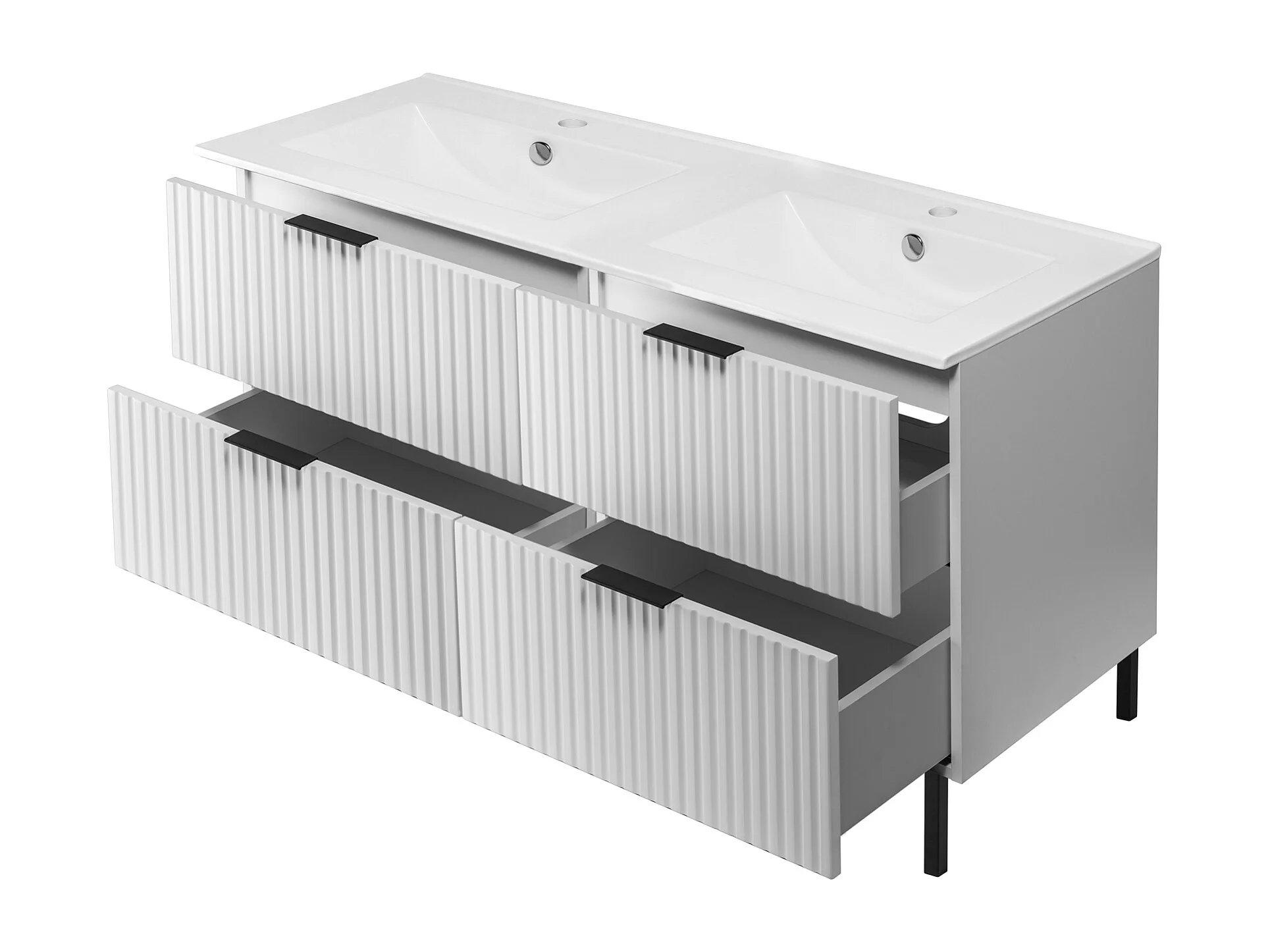 Meuble vasque, Blanc, 120 (2 x 60) x 77 x 46 cm, poignée noire, sans plateau