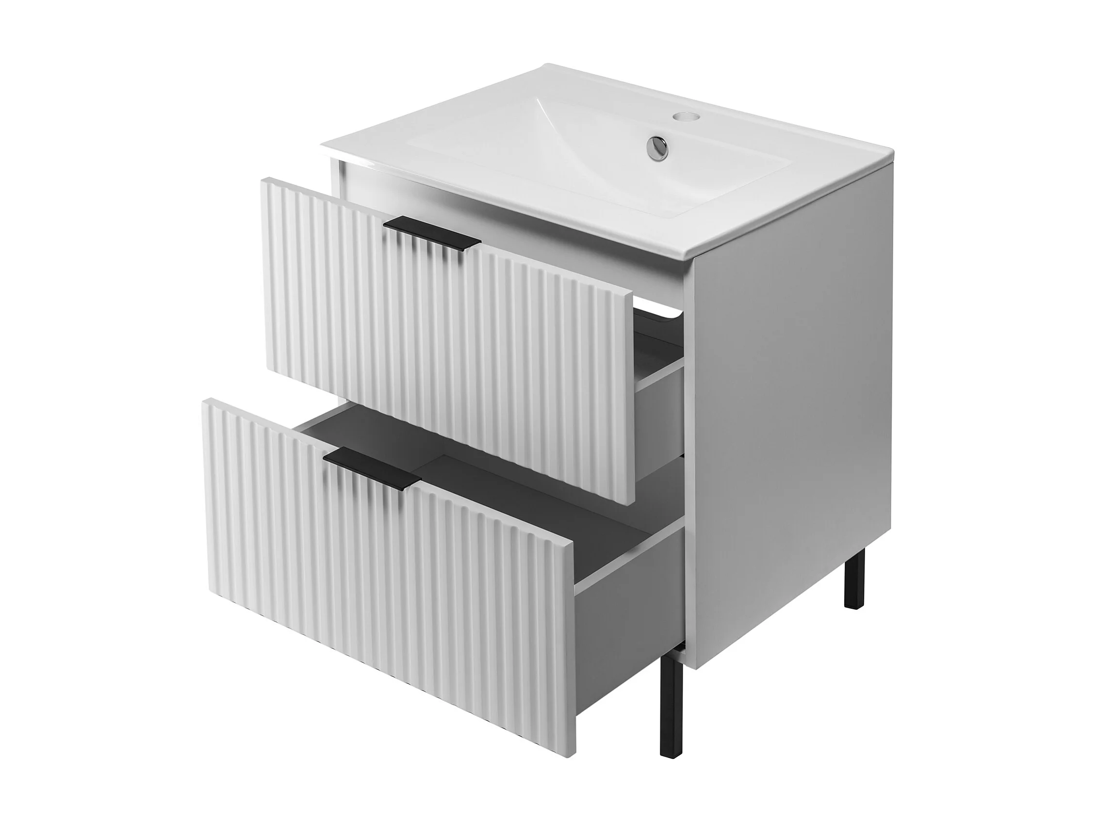 Meuble vasque, Blanc, 60 x 77 x 46 cm, poignée noire, sans plateau