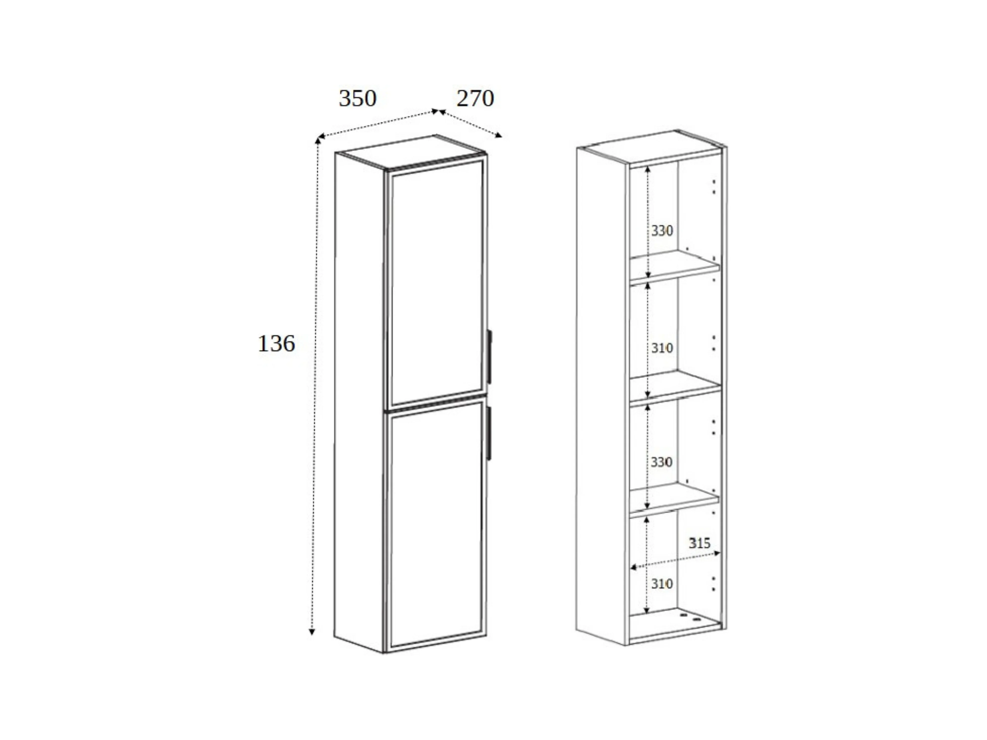 Colonne suspendue 1 porte avec 5 niches de rangement H135 cm