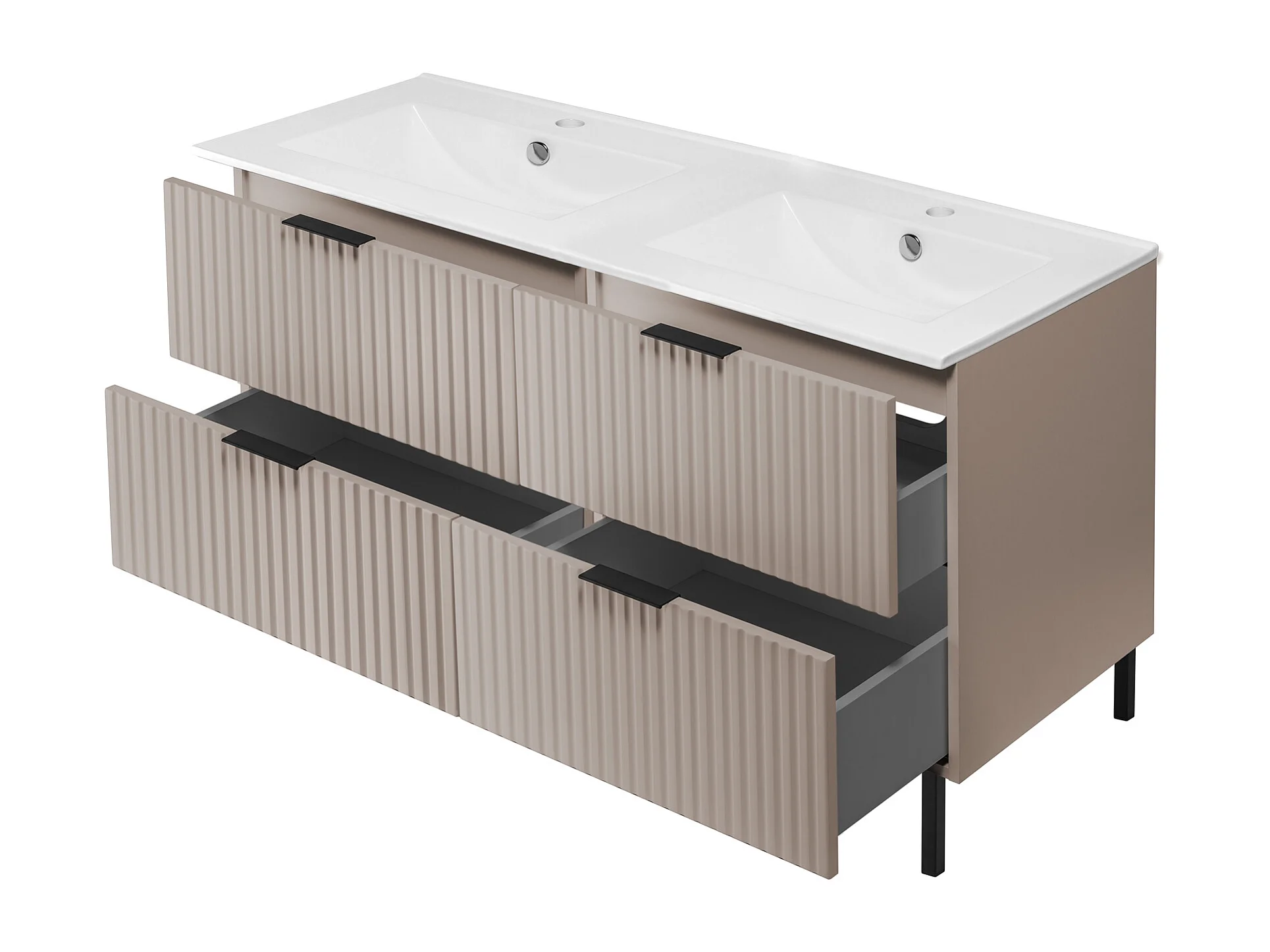 Meuble vasque, Cachemire + poignée noire, 120 (2 x 60) x 77 x 46 cm, poignée noire, pieds noirs, sans plateau