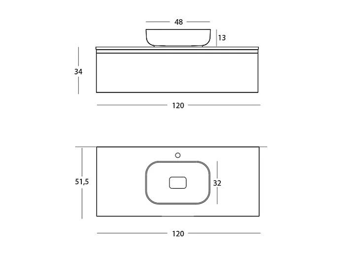 Meuble De Salle De Bain Celyn - 1 Commode Gris Clair - Lavabo Central En Céramique - 32X120