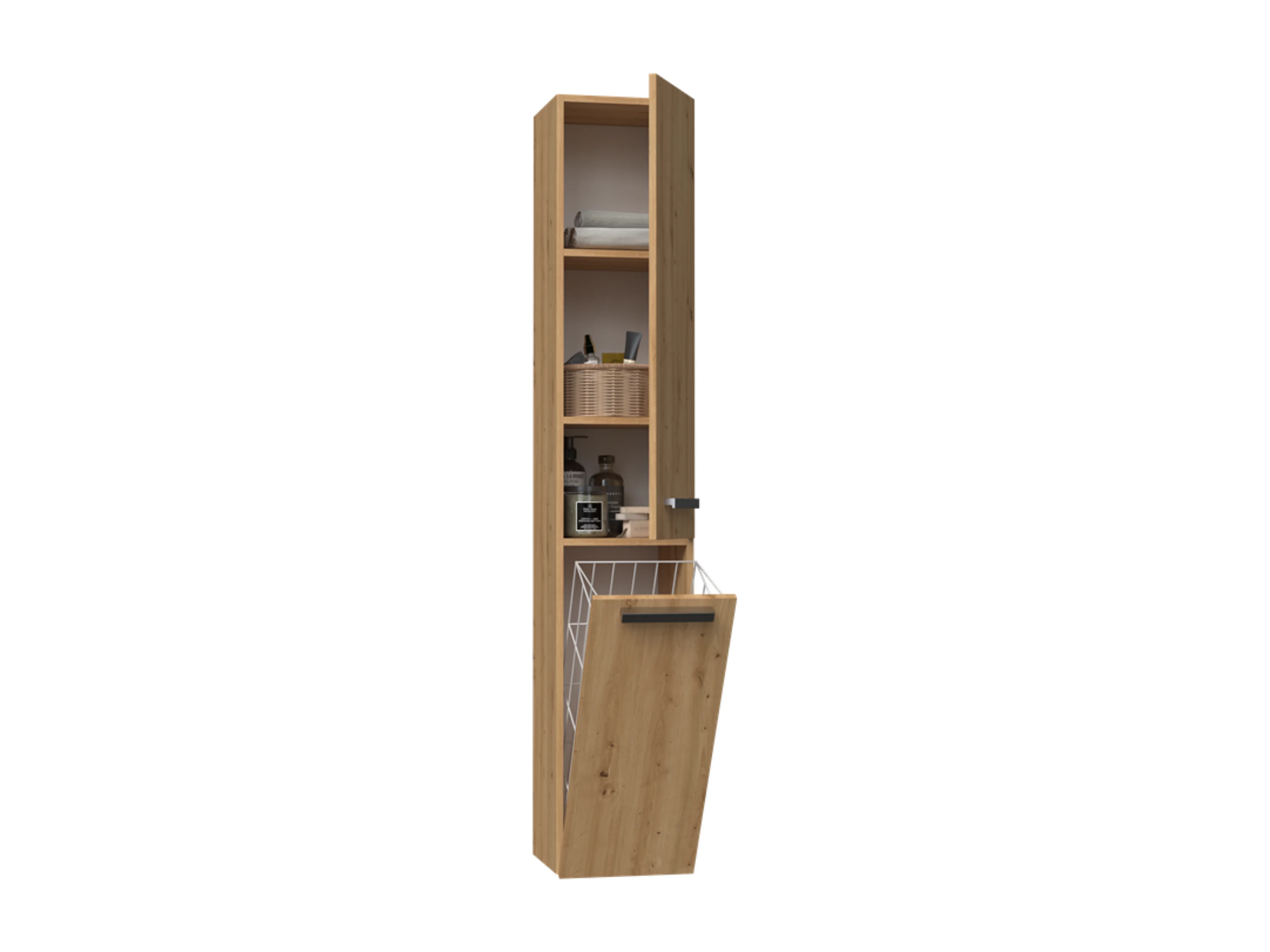 Meuble Colonne De Salle De Bain Avec 3 Niches, 1 Porte Et 3 Etagères Intérieurs, BZr62-pf