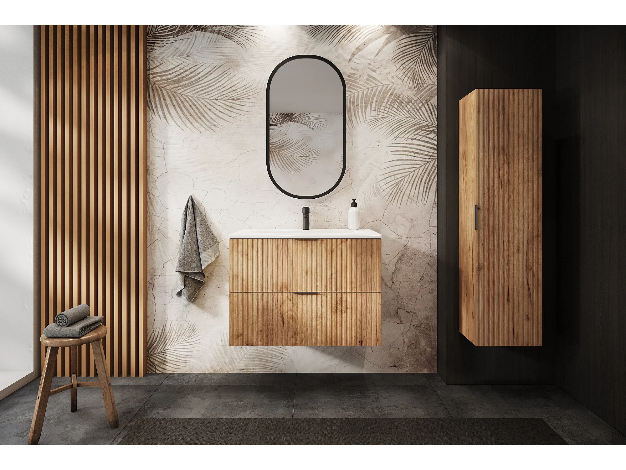 Meuble vasque, Chêne Craft, 80 x 57 x 46 cm, poignée noire, sans plateau