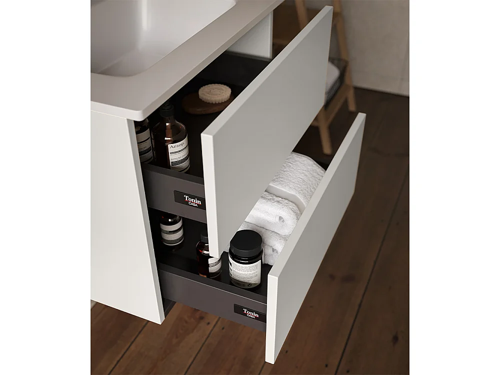 Meuble De Salle De Bain Éthéré, Finition Gris Clair, 2 Tiroirs Et Lavabo Central