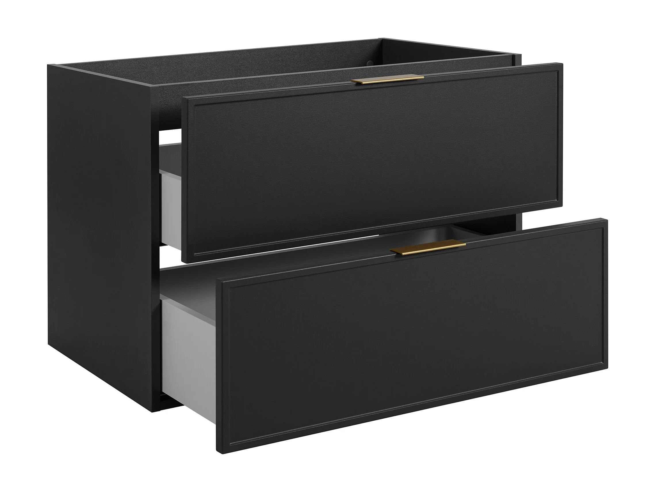 Meuble de salle de bain, Gris foncé, poignée dorée, 46 x 80 x 57 cm