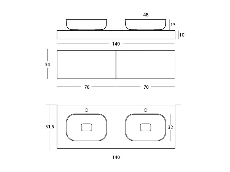Meuble De Salle De Bain Lumis - 2 Commodes Gris Colombe - Étagère En Chêne Naturel - 2 Lavabos En Céramique - 32X120