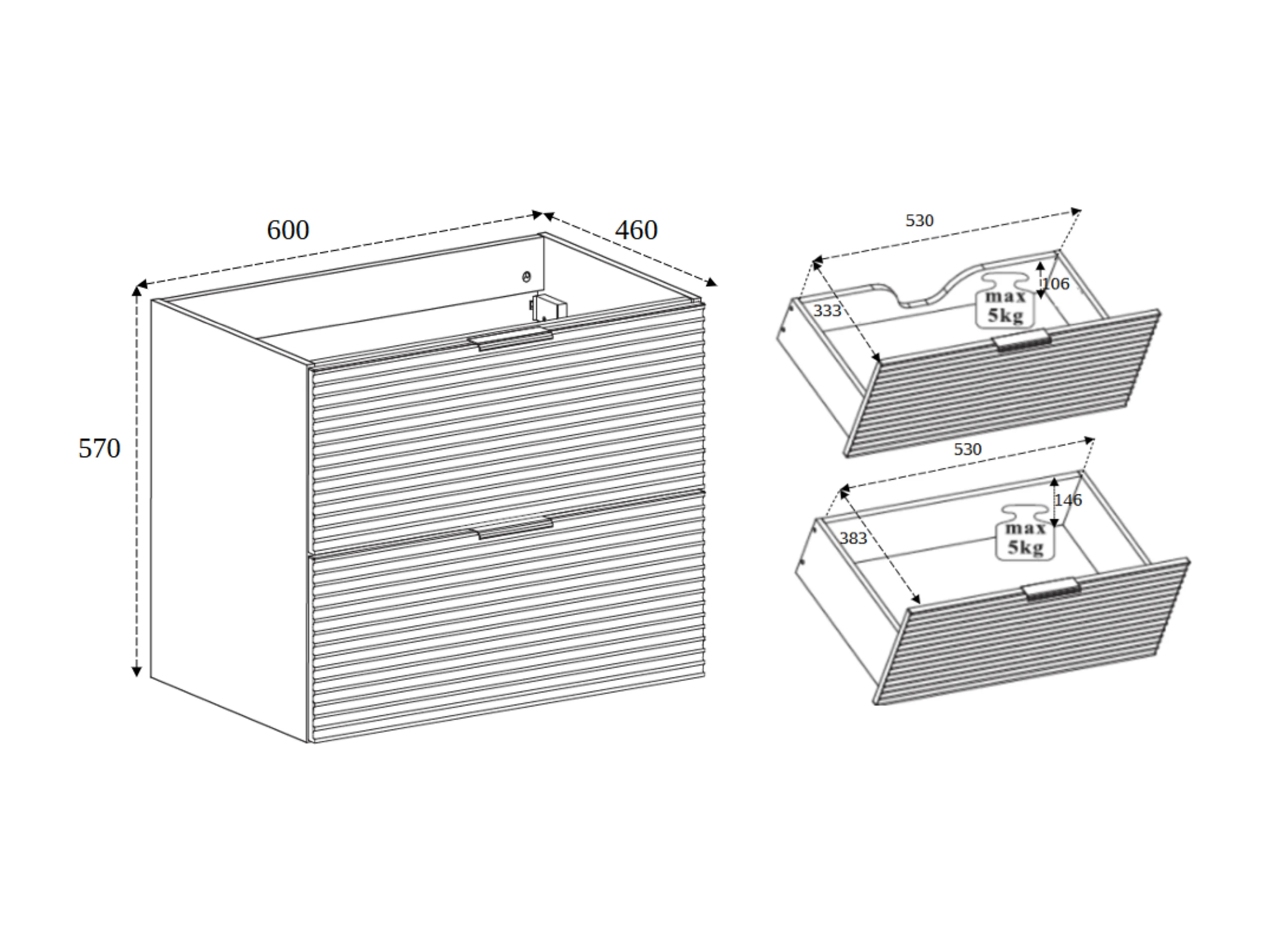 Meuble de salle de bain, Noir Mat, 60 x 57 x 46 cm