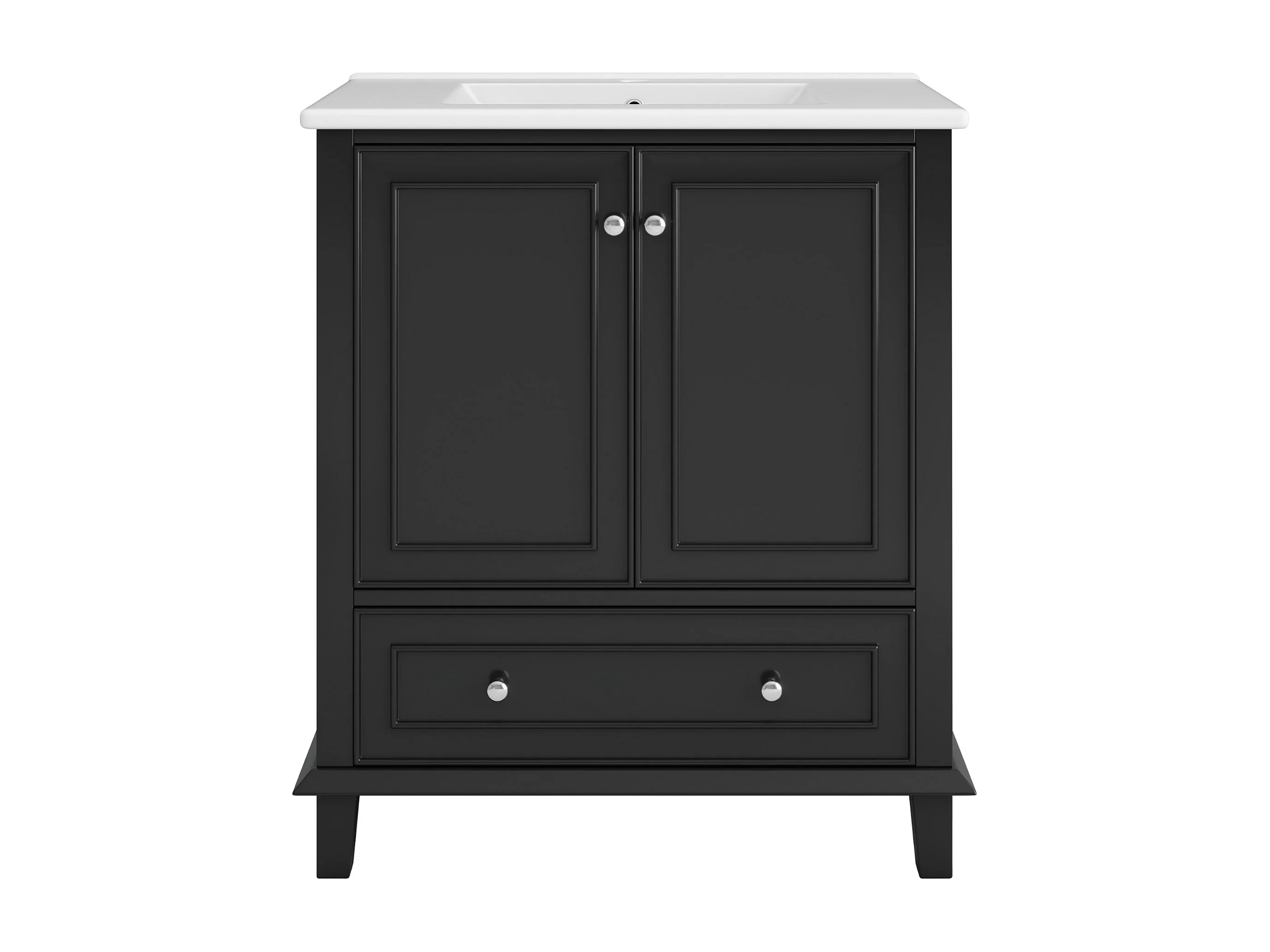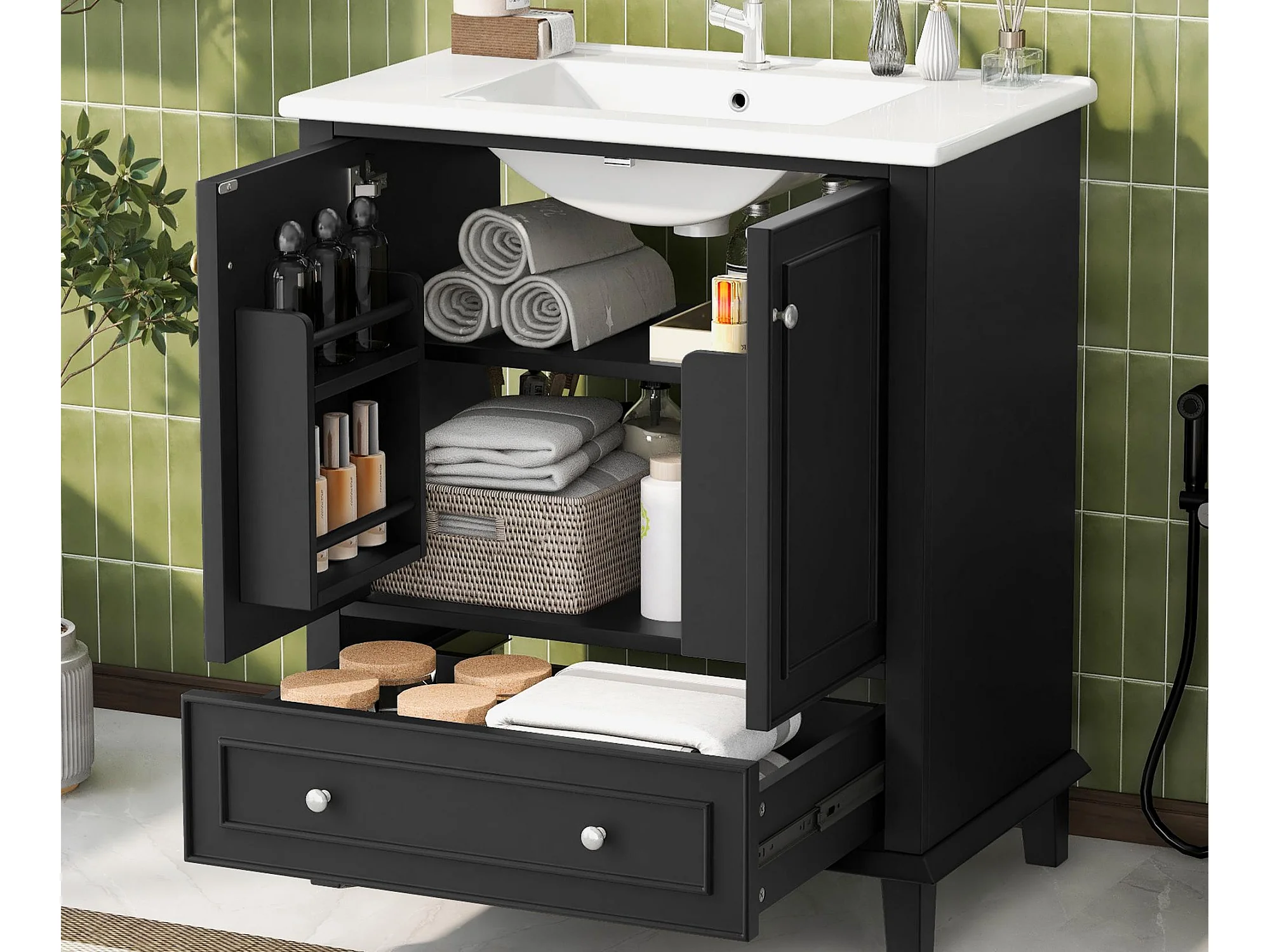 Meuble de salle de bain sur pied - avec une vasque en céramique - 2 portes et 1 tiroir - noir(robinet non inclus)
