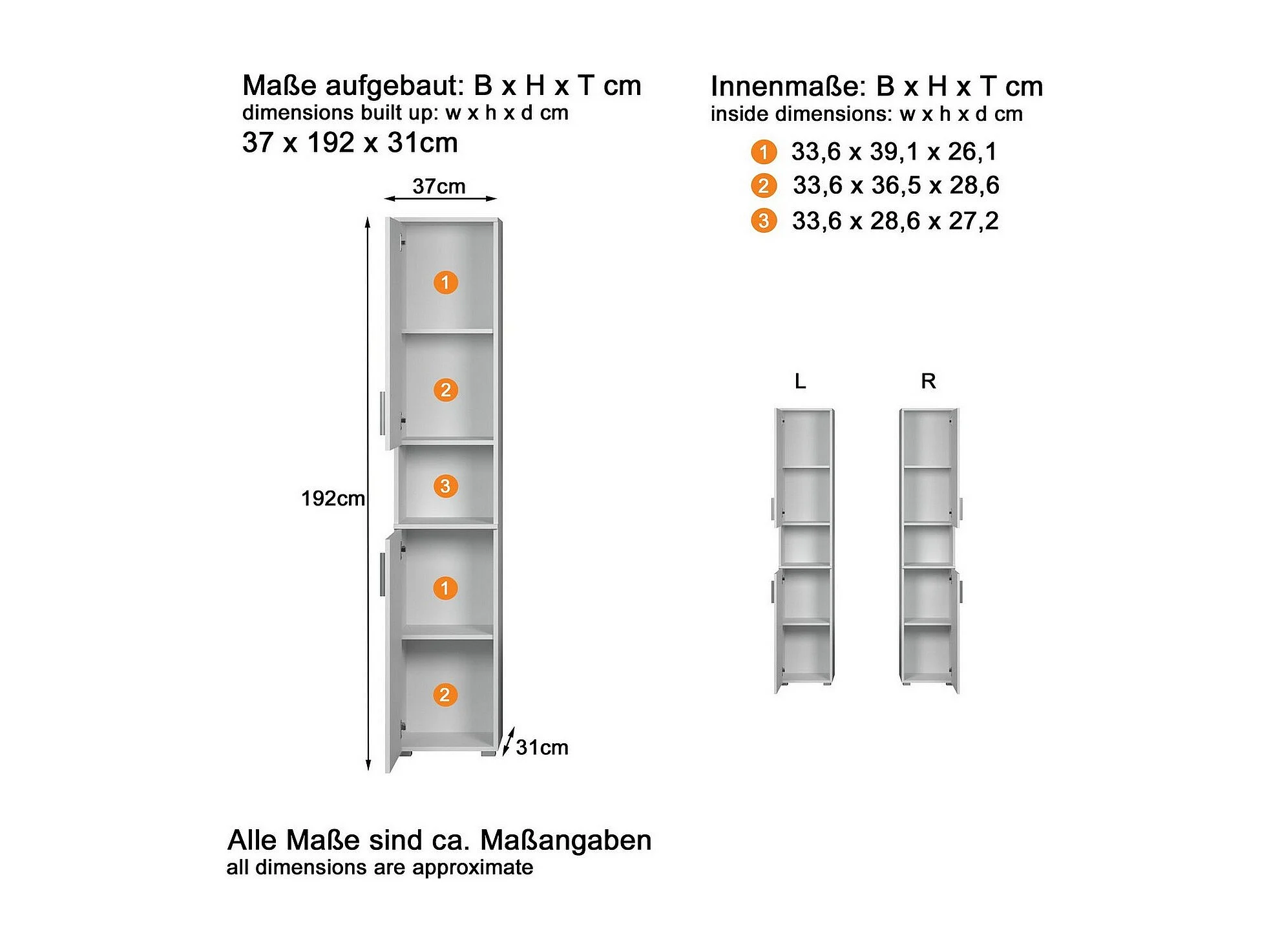 Meuble de Salle de Bain sur Pied Wons, Blanc, 37x31x192 cm, Seven Design
