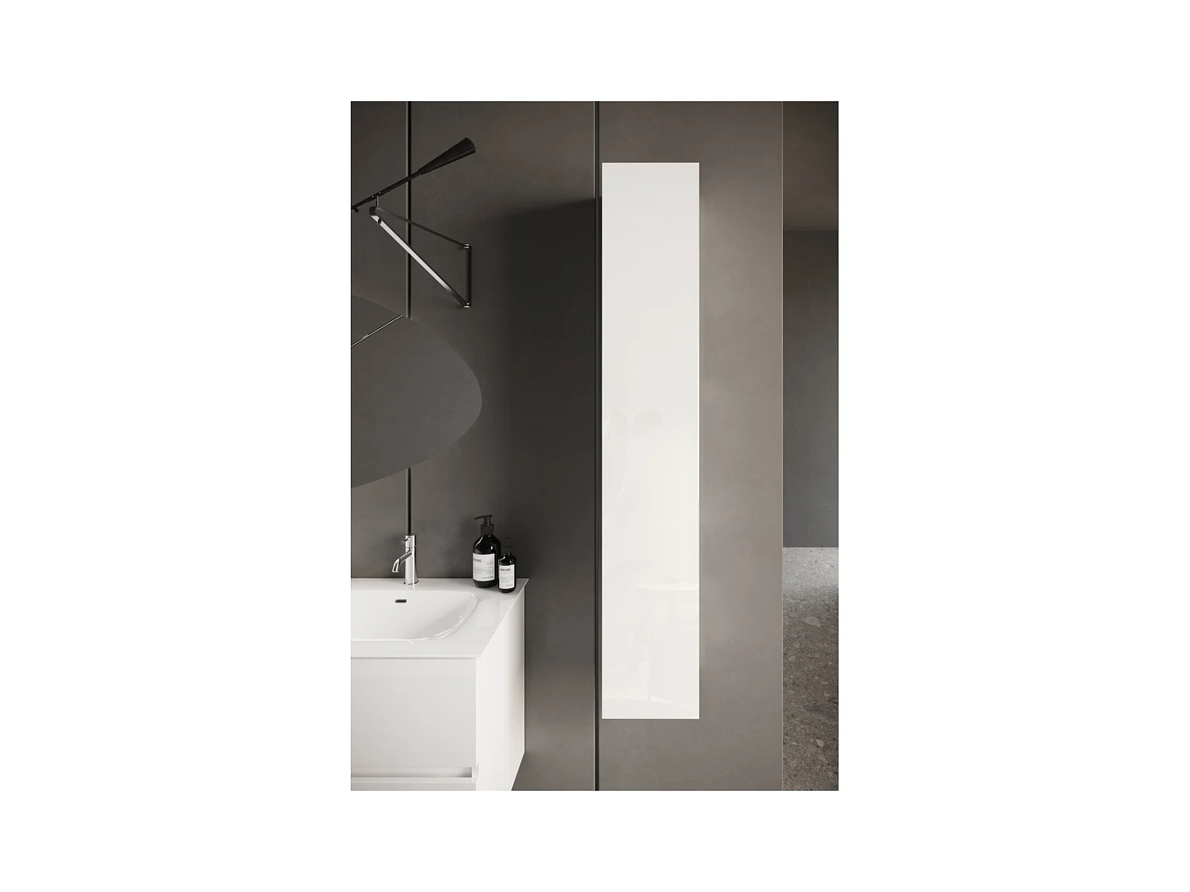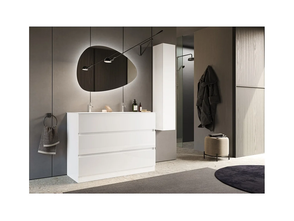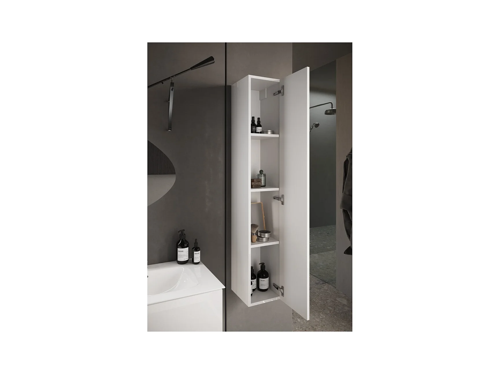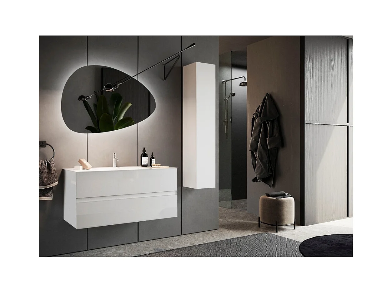 Meuble de salle de bain suspendu VIENNE – 1 porte – Blanc brillant – Design moderne