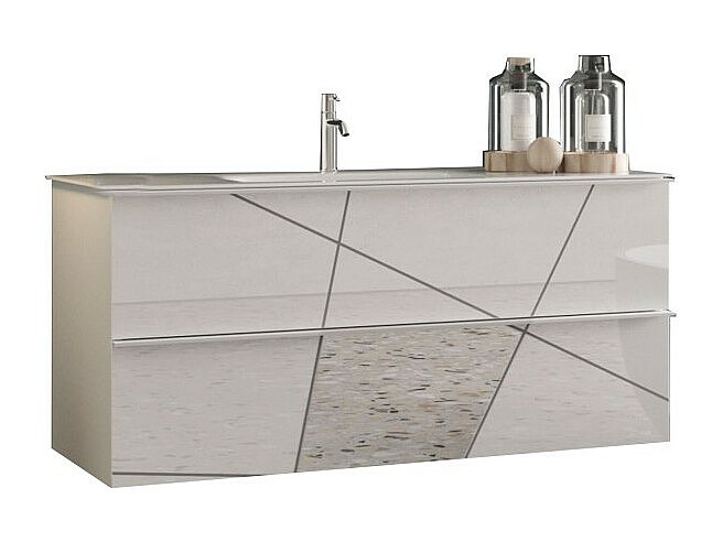 Meuble de salle de bain suspendu avec 1 vasque et 2 tiroirs, collection VITARIO. Coloris blanc brillant