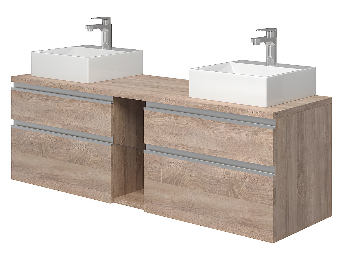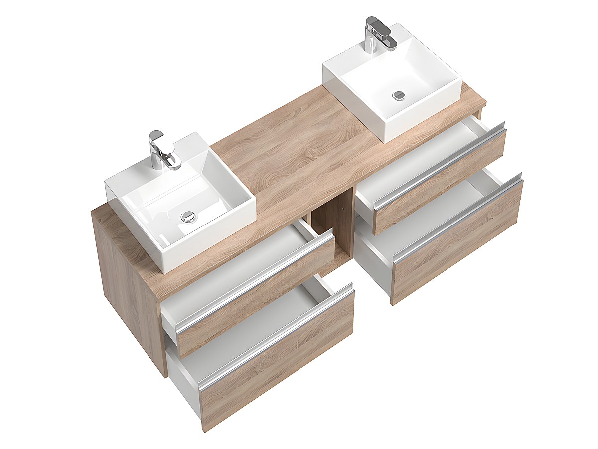 Ensemble de salle de bain suspendu avec double vasque et miroirs MAGDALENA - couleur chêne