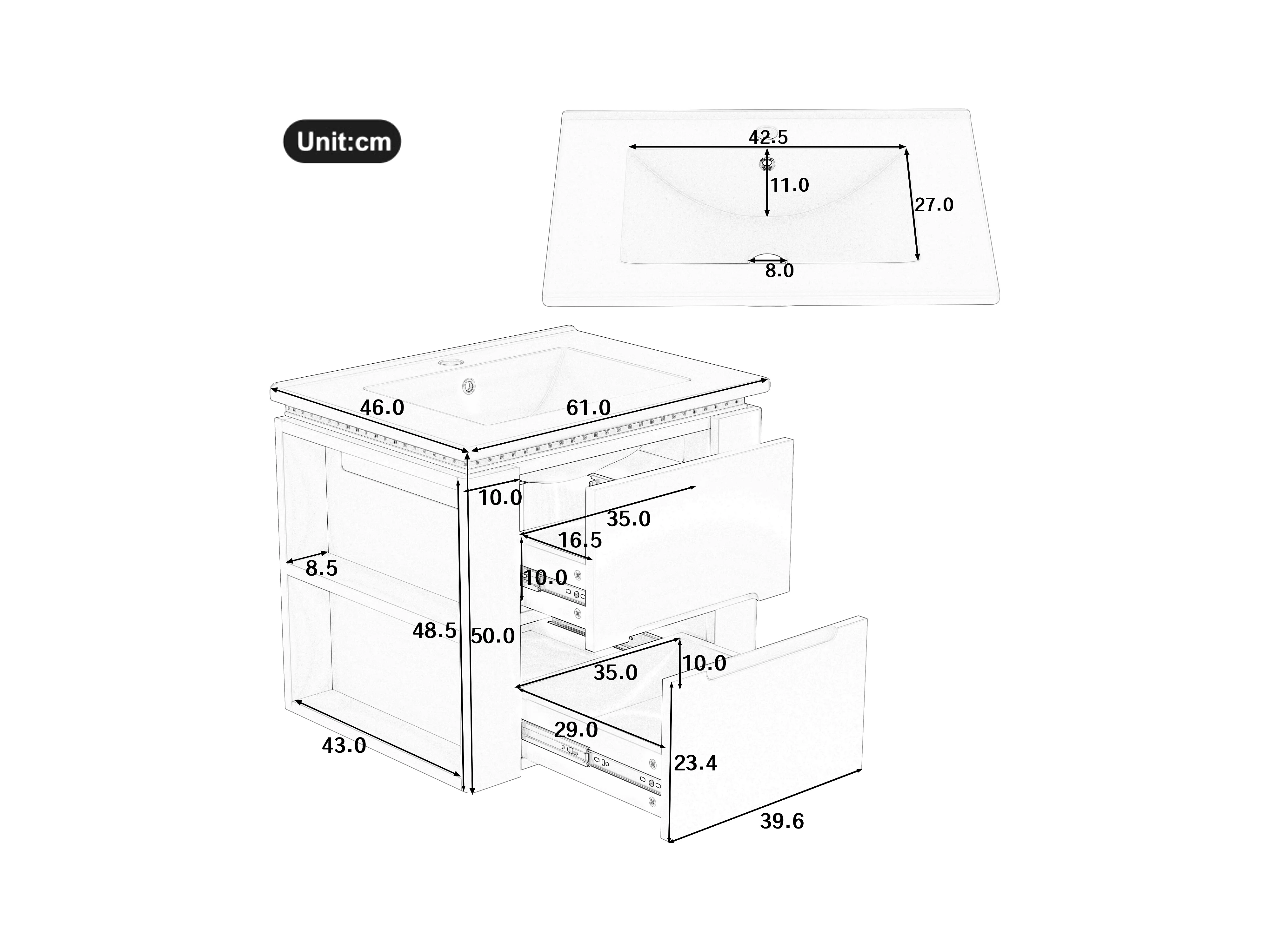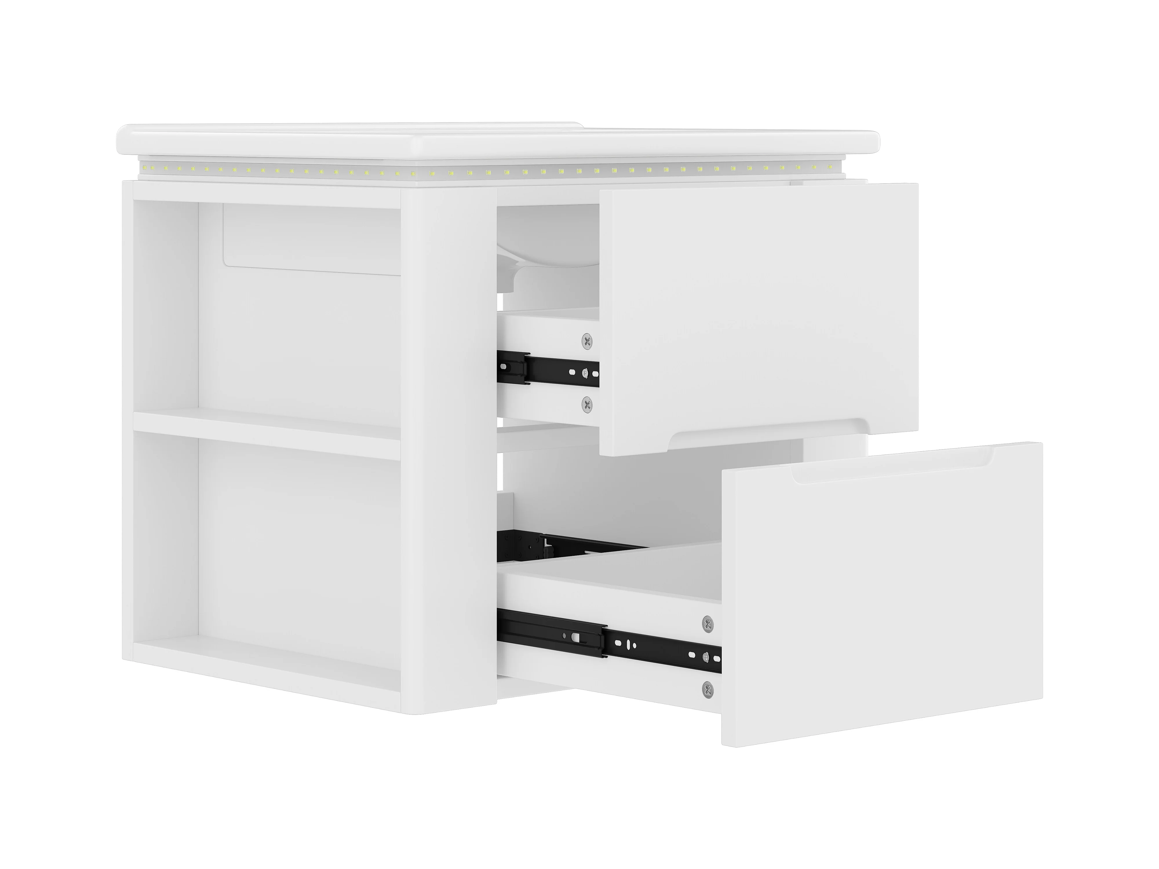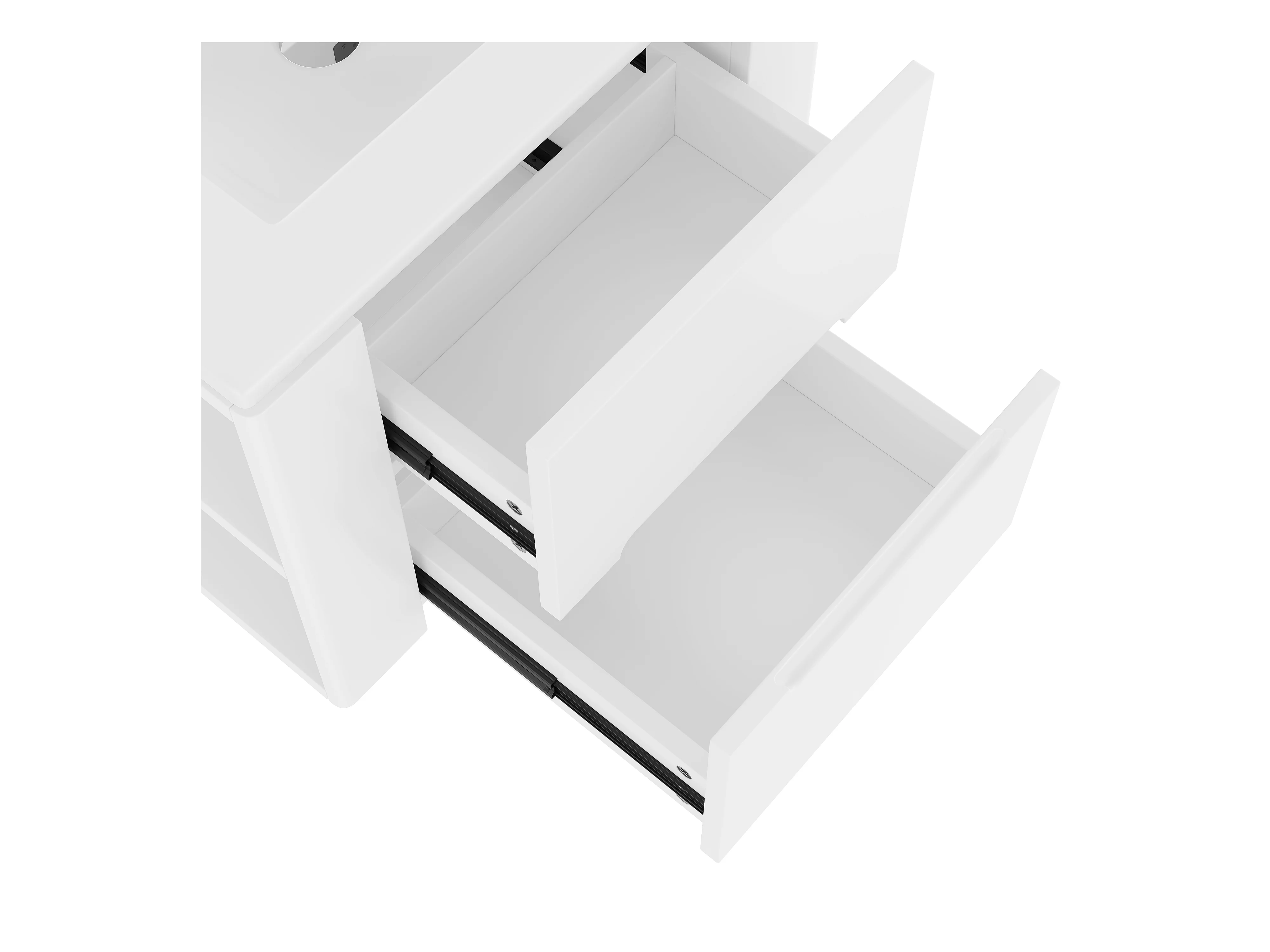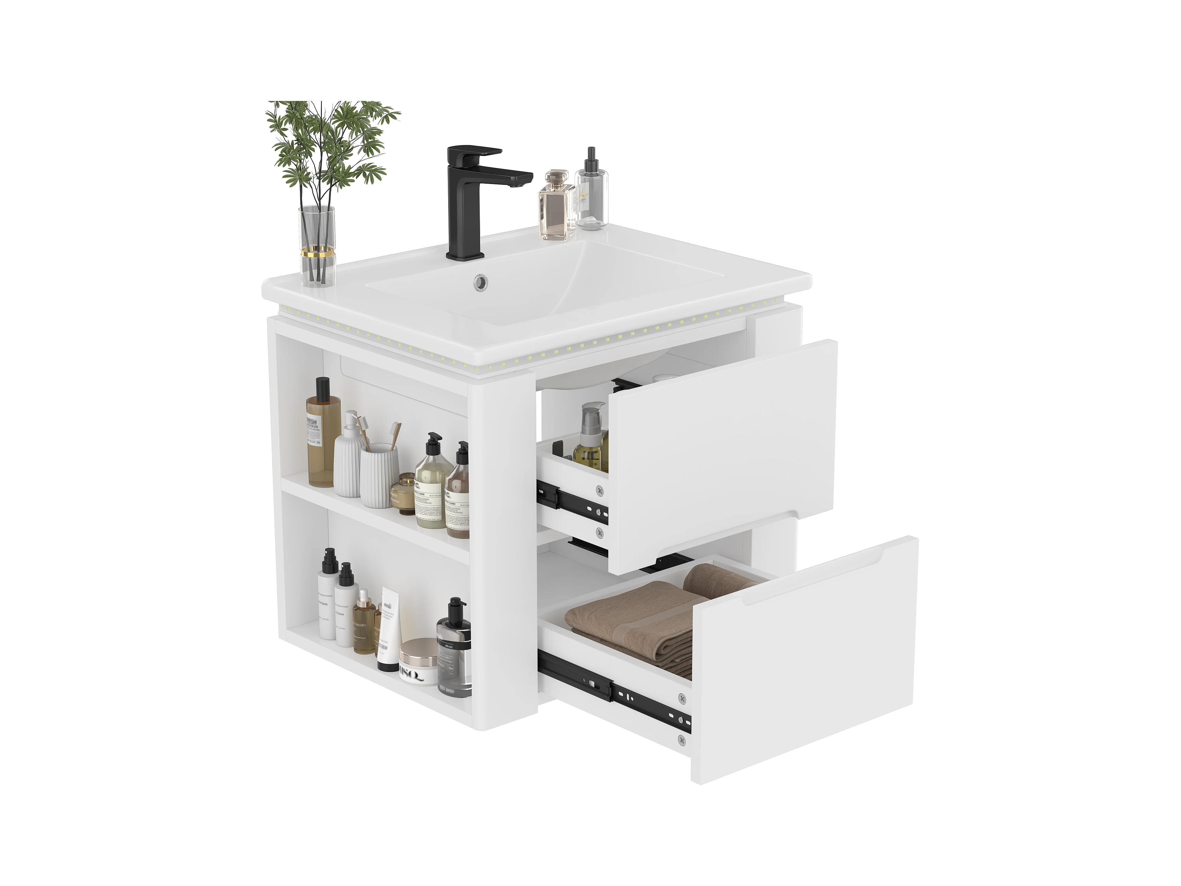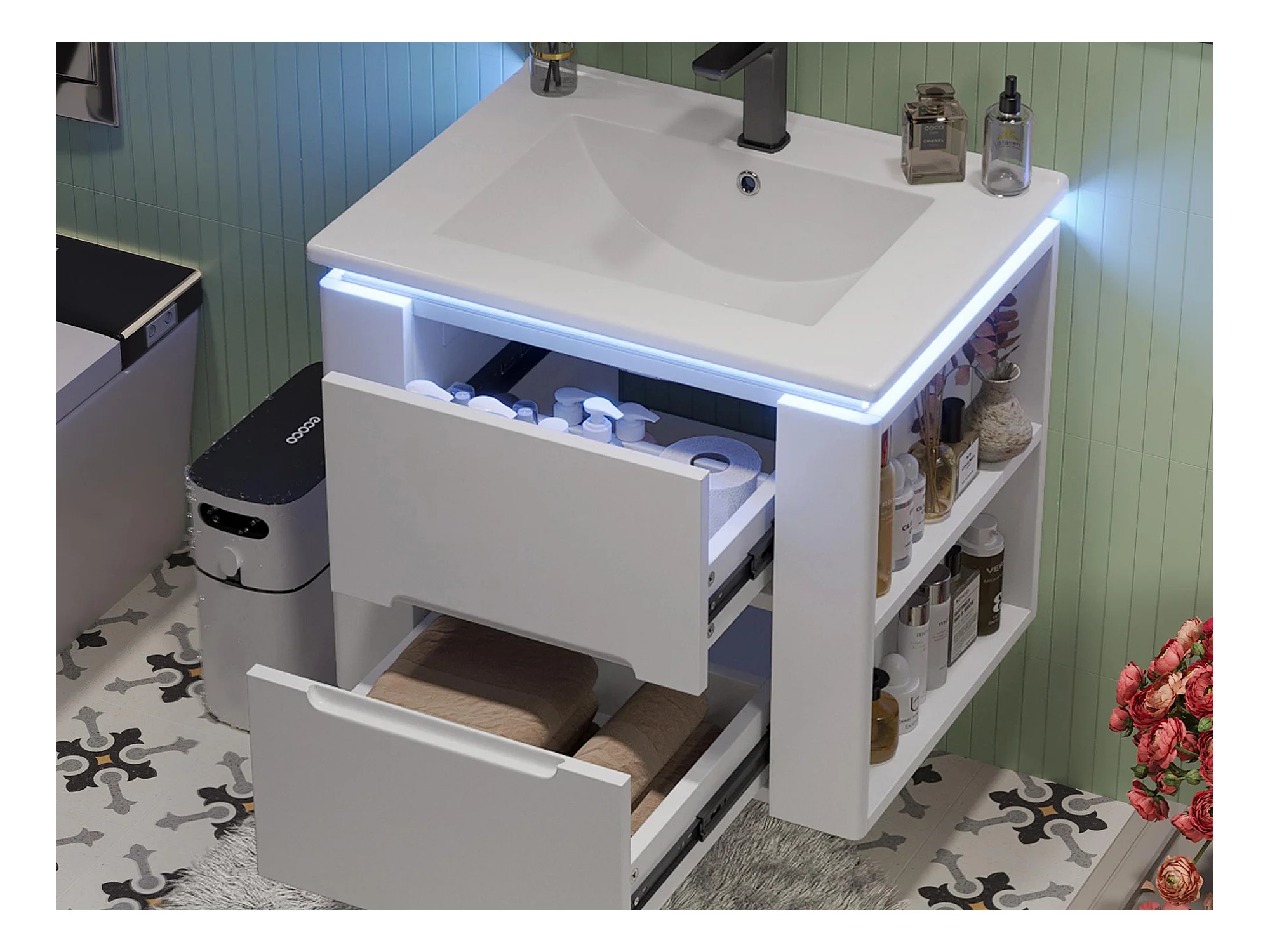 Meuble de salle de bain suspendus avec une vasque en céramique - avec LED - 2 tiroirs - 2 étagères latérales - blanc(robinet non inclus)