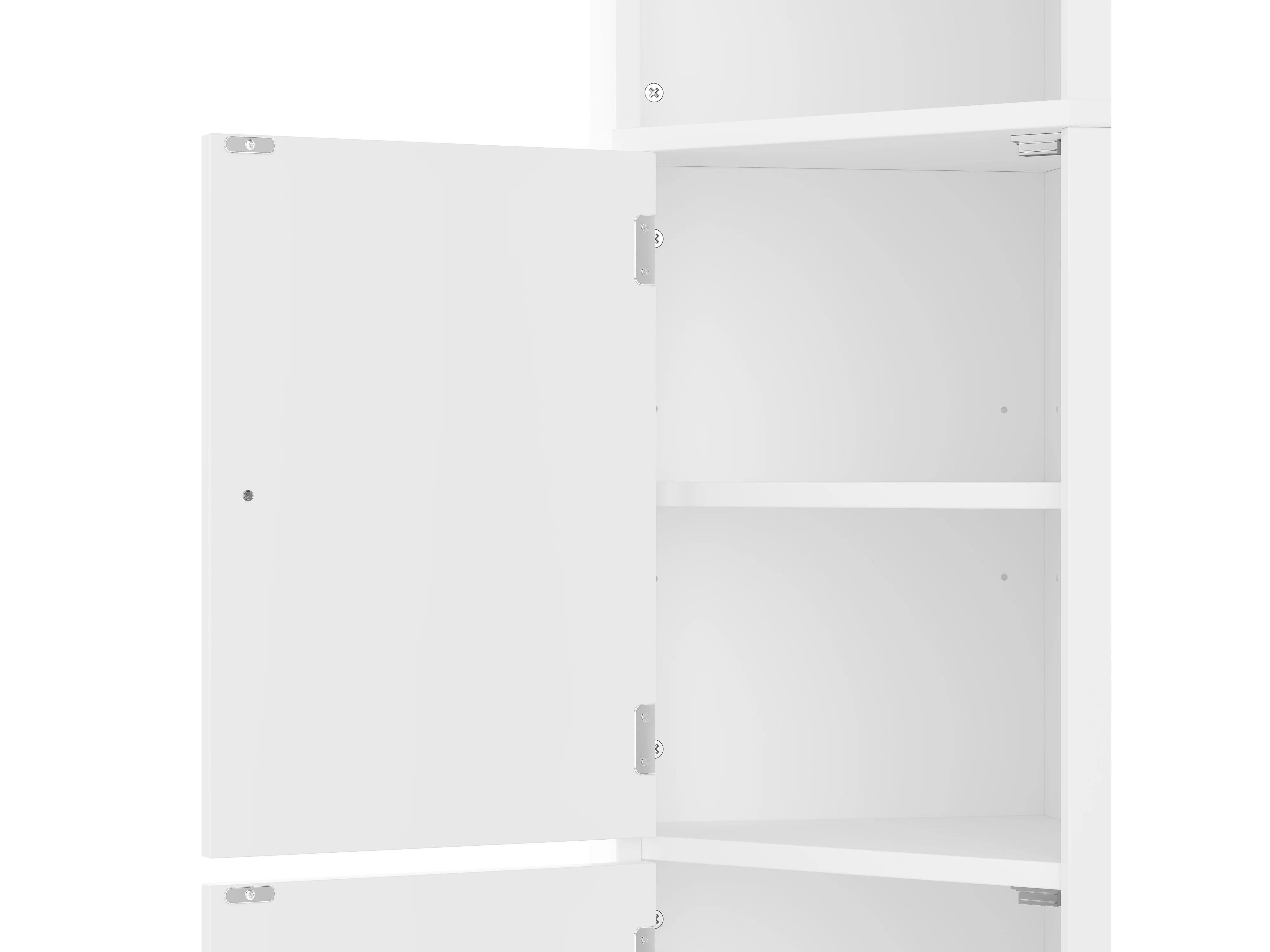 Colone d'angle de salle de bain - 2 compartiments ouverts et 2 portes - étagères réglables - Blanc