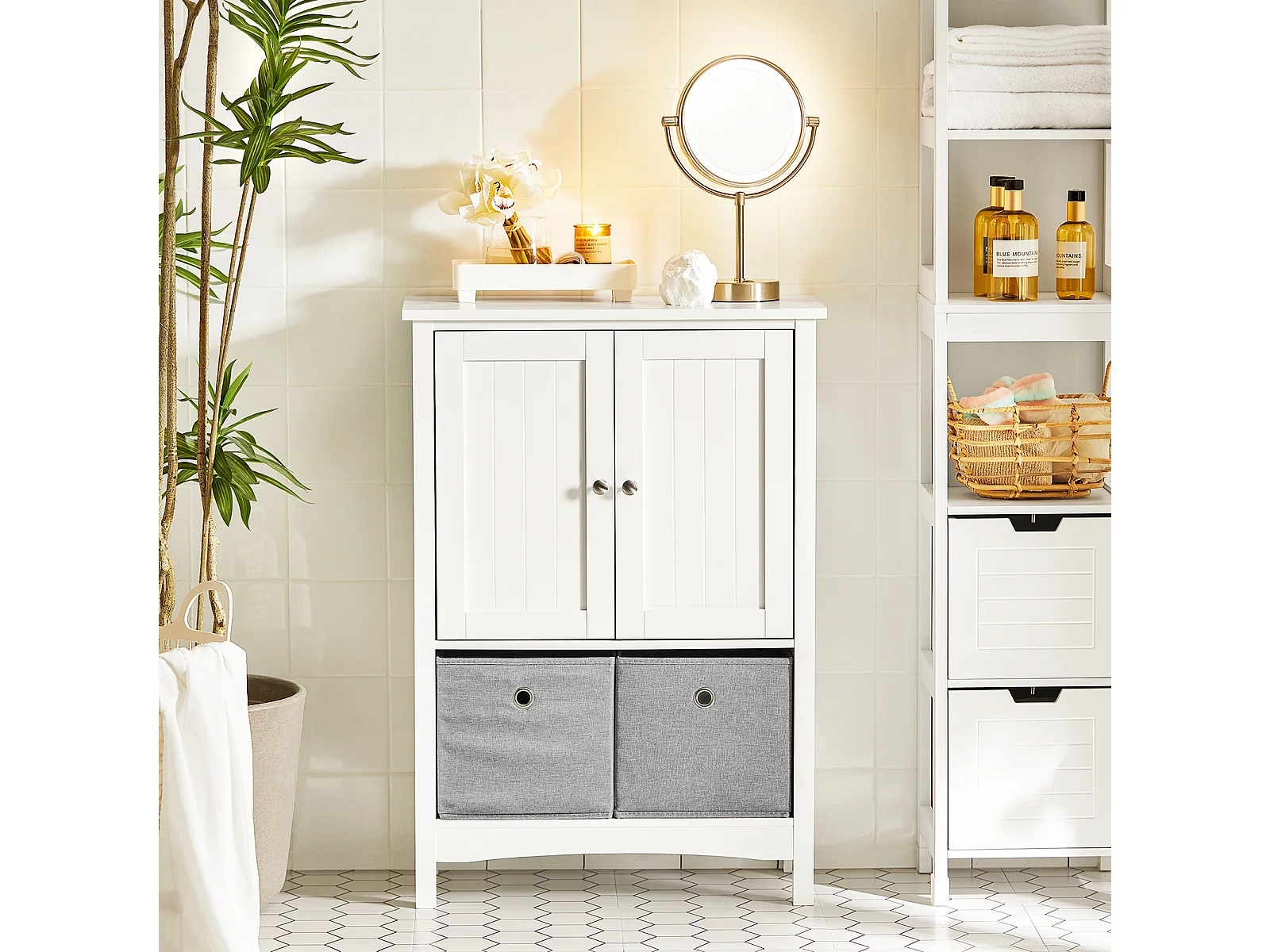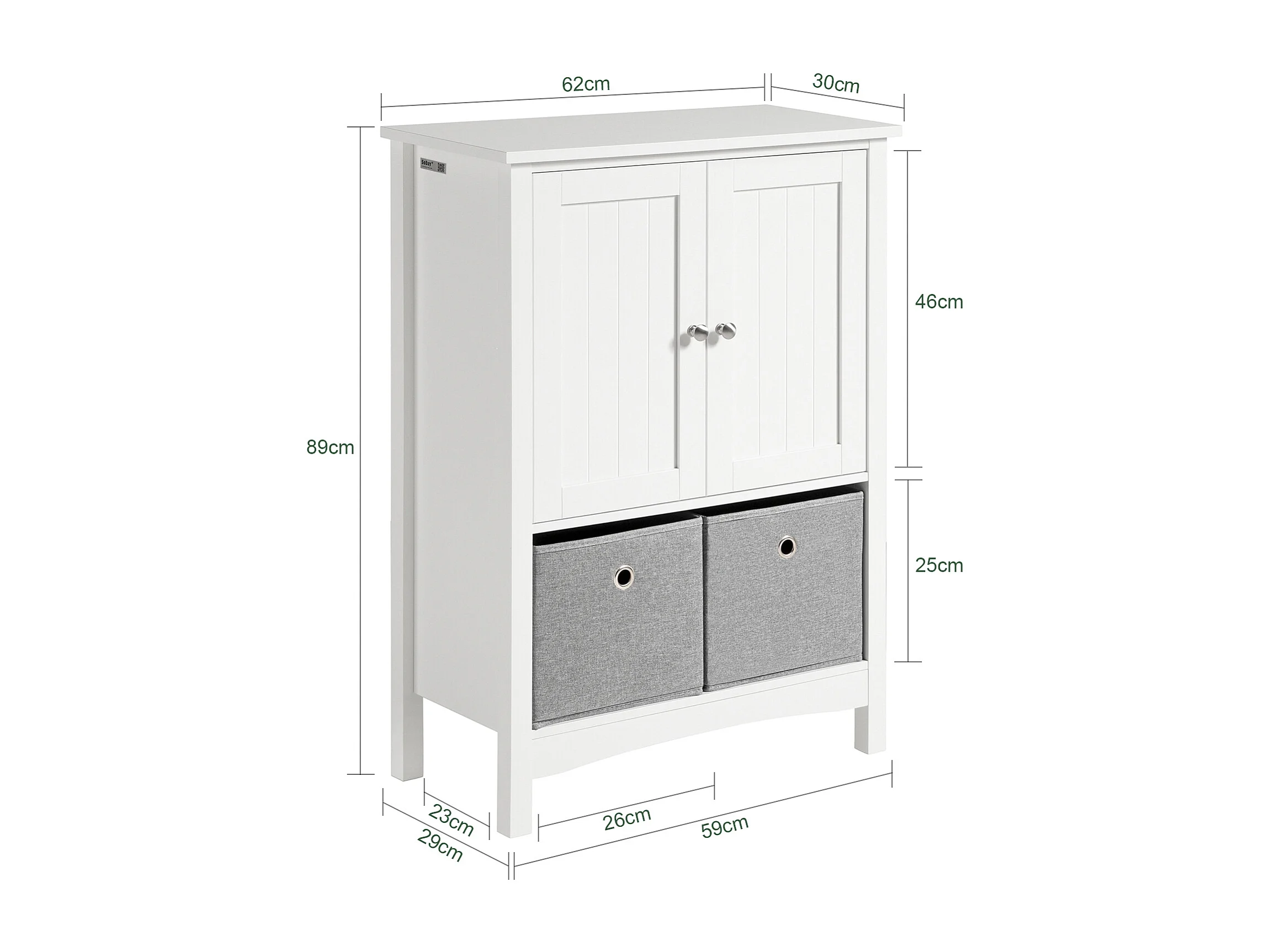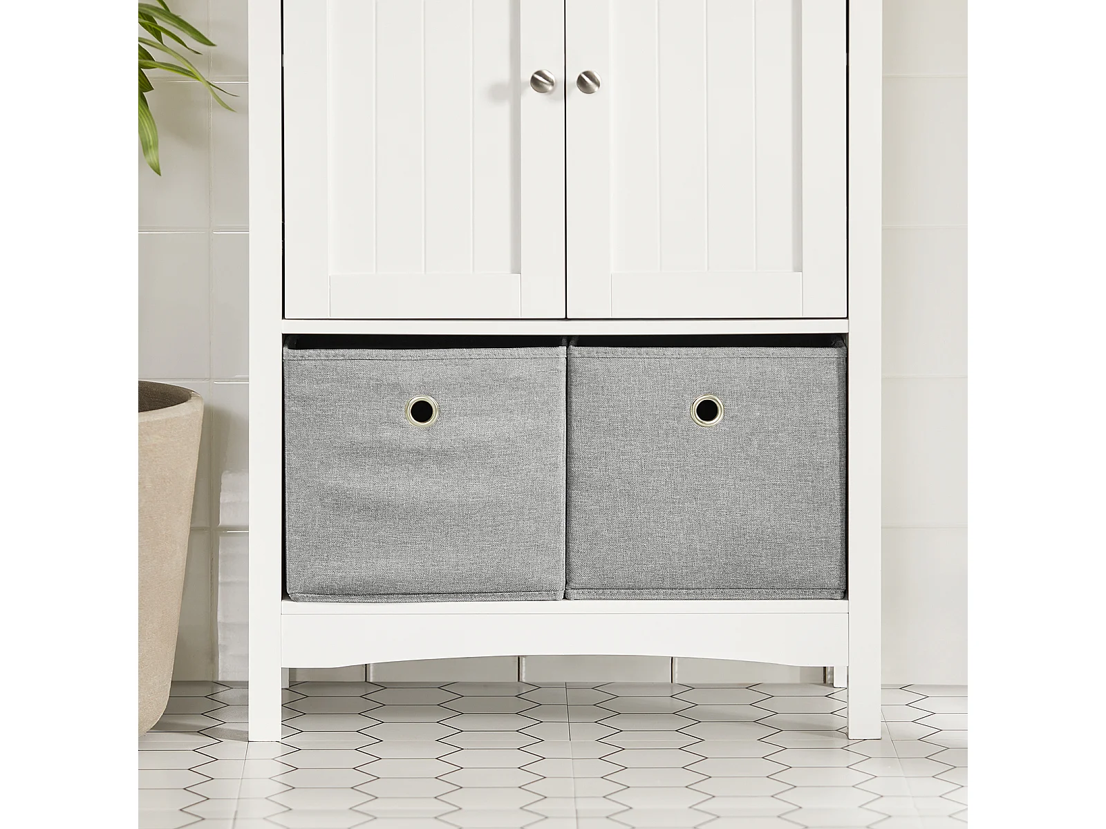 Meuble De Salle De Bains Placard De Rangement Avec 2 Portes Et 2 Paniers Amovibles, BZr64-w