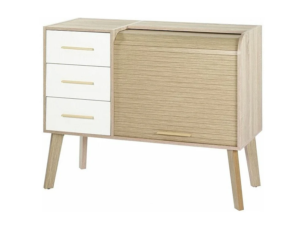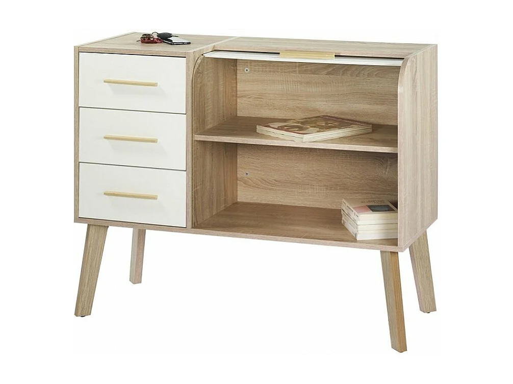 Meuble d'entrée chêne clair 3 tiroirs blanc 2 niches rideau blanc Happy 110cm