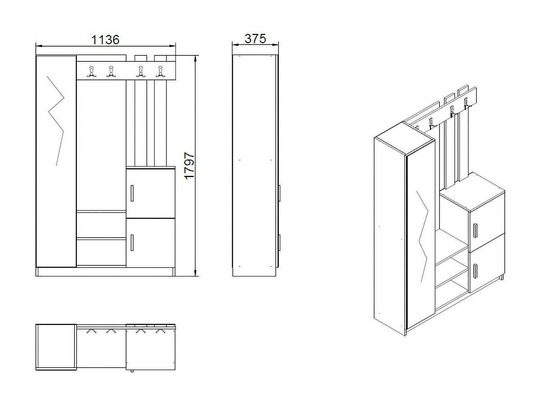 DIMENSIONS EN CM - Meuble d'entrée : Longueur: 113,6 Largeur: 37,5 Hauteur: 179,7