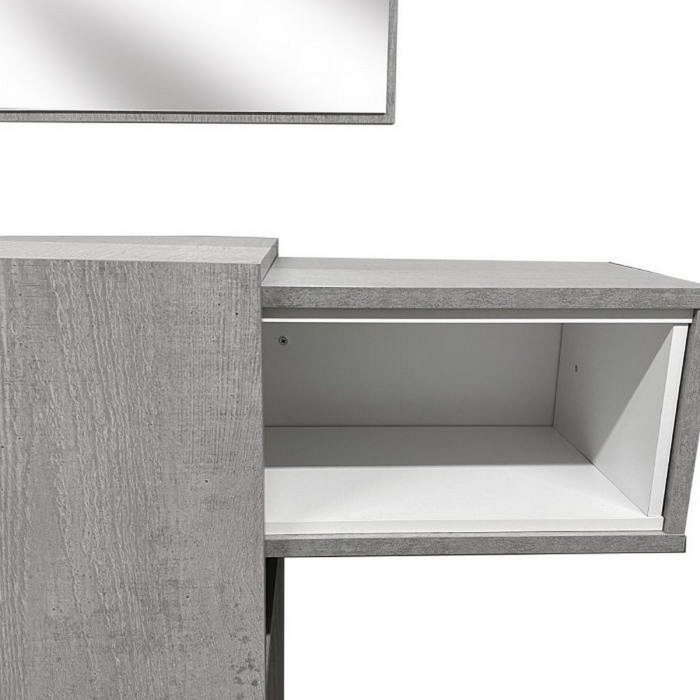 Meuble d'entrée Mcallen, Entrée réversible avec miroir, Meuble d'entrée avec tiroir, Plateau de poche pour appartements, 95x26h69 cm, Blanc et Ciment