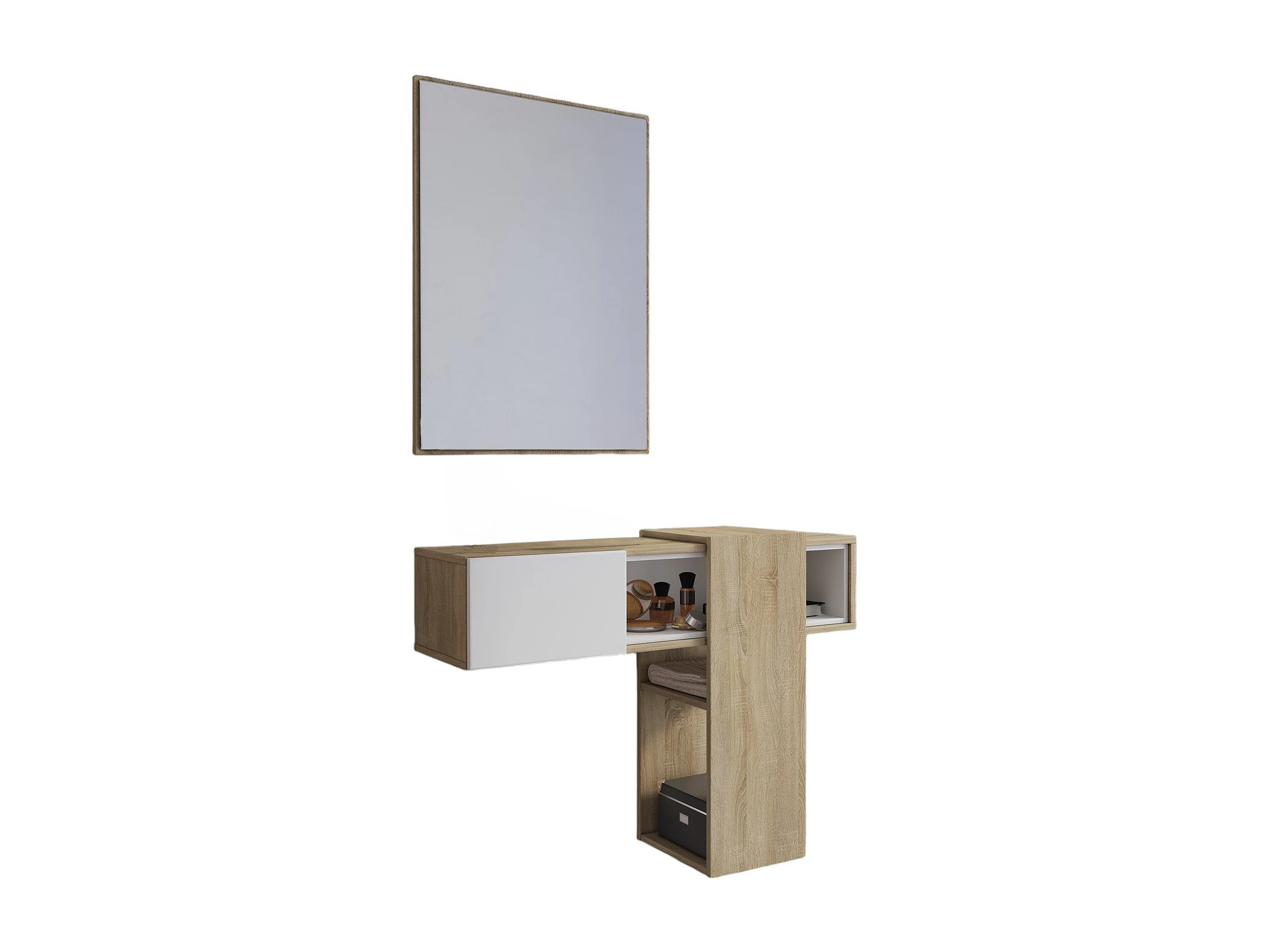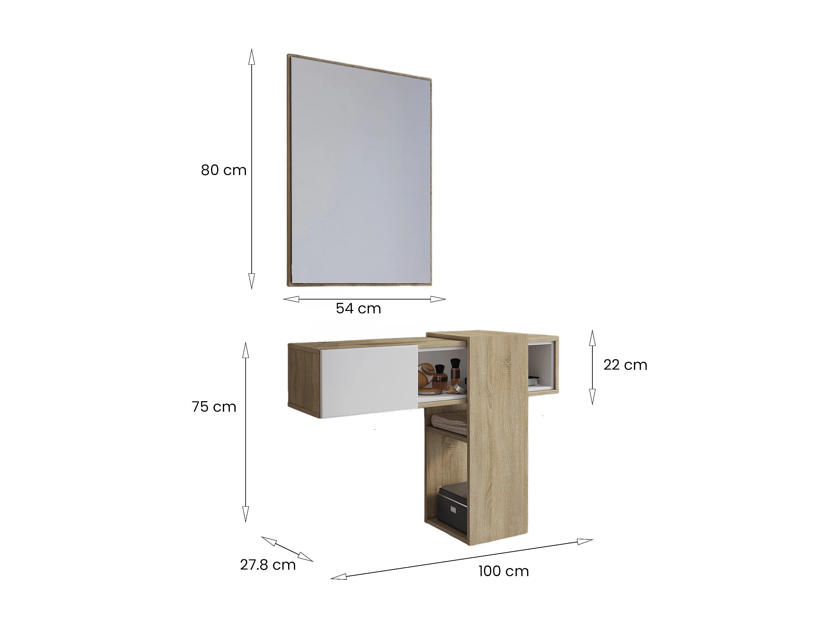 Meuble d'entrée Baffin, Crochet d'entrée, Composition pour l'atrium, Console de rangement multifonction, 100x31h75 cm, Chêne clair et Blanc