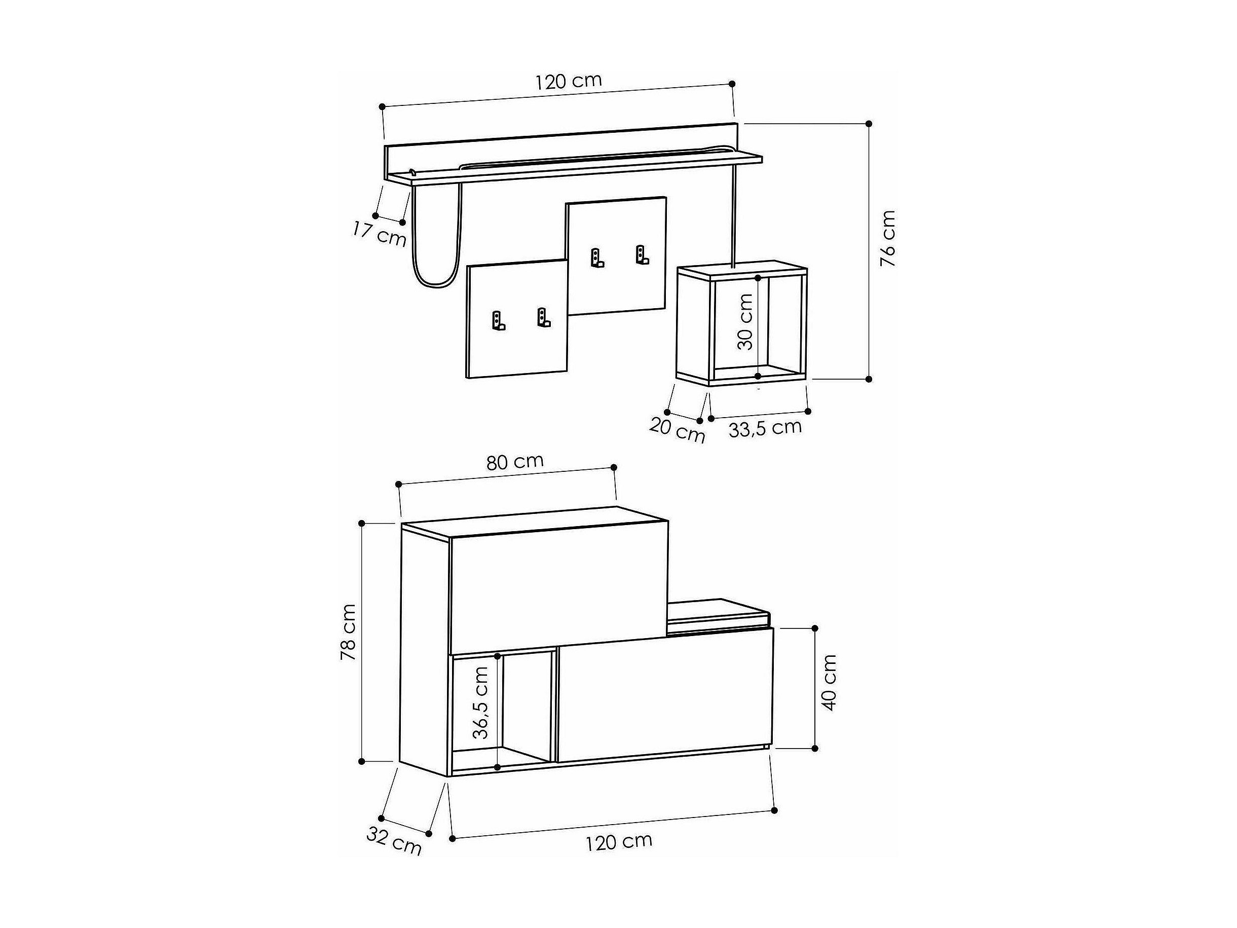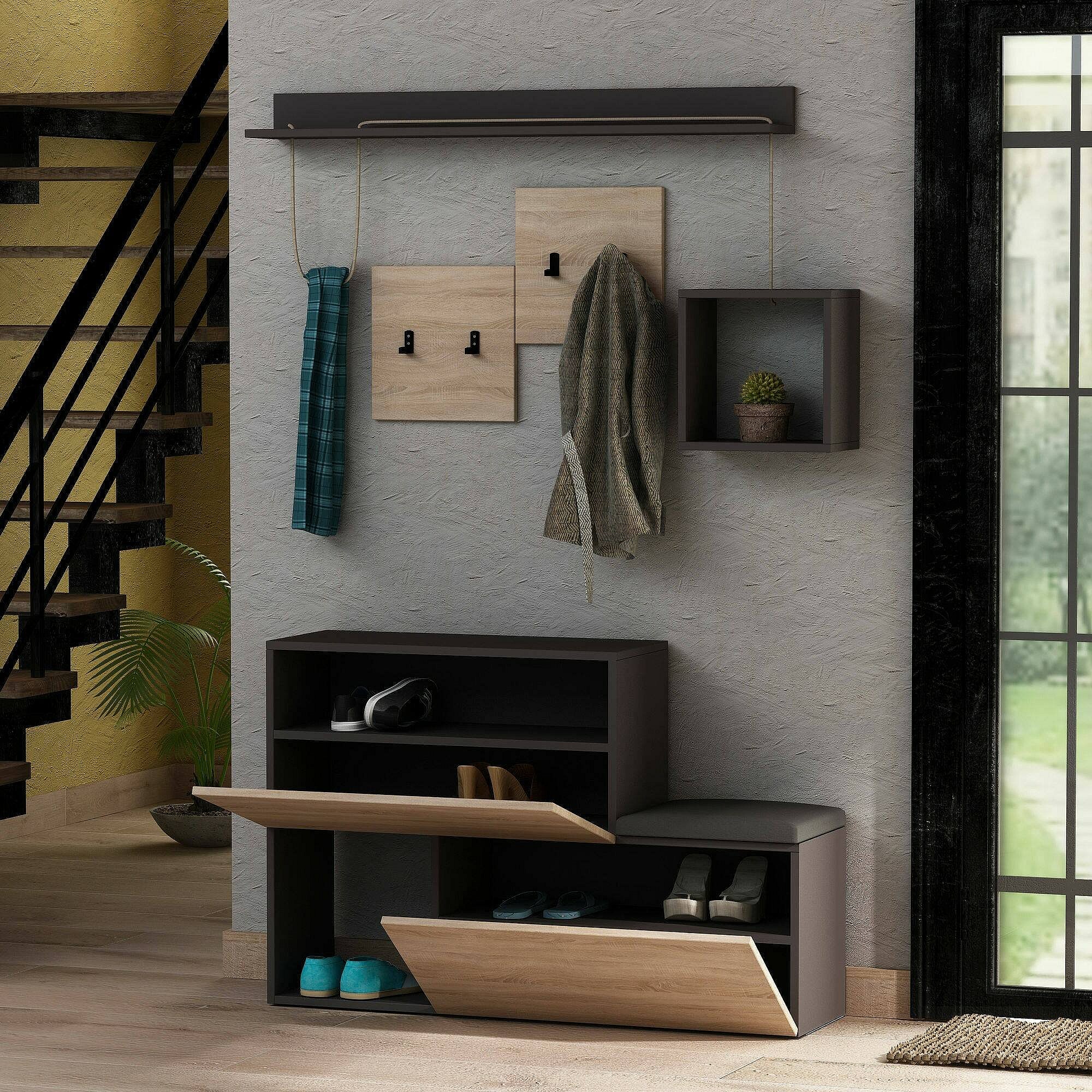 Meuble d'entrée Caph, Crochet d'entrée, Composition pour l'atrium, Console de rangement multifonction, 120x17h76 cm, Anthracite et chêne