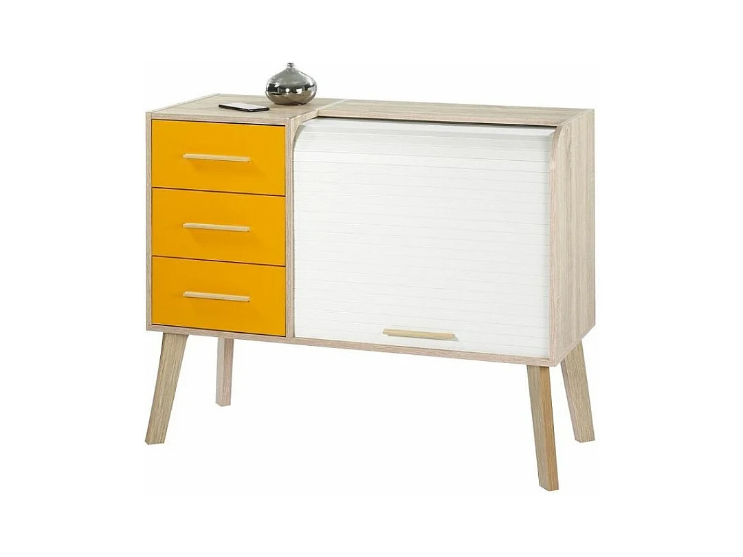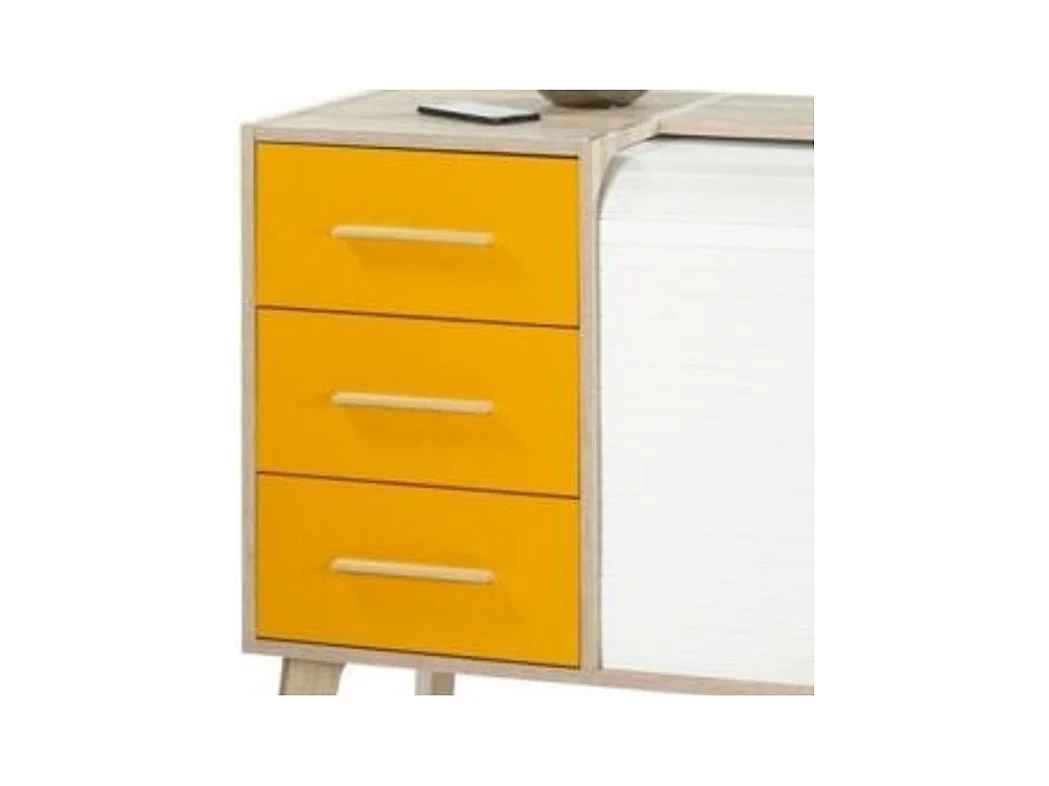 Meuble d'entrée 3 tiroirs 2 niches rideau chêne clair et jaune Happy 110cm