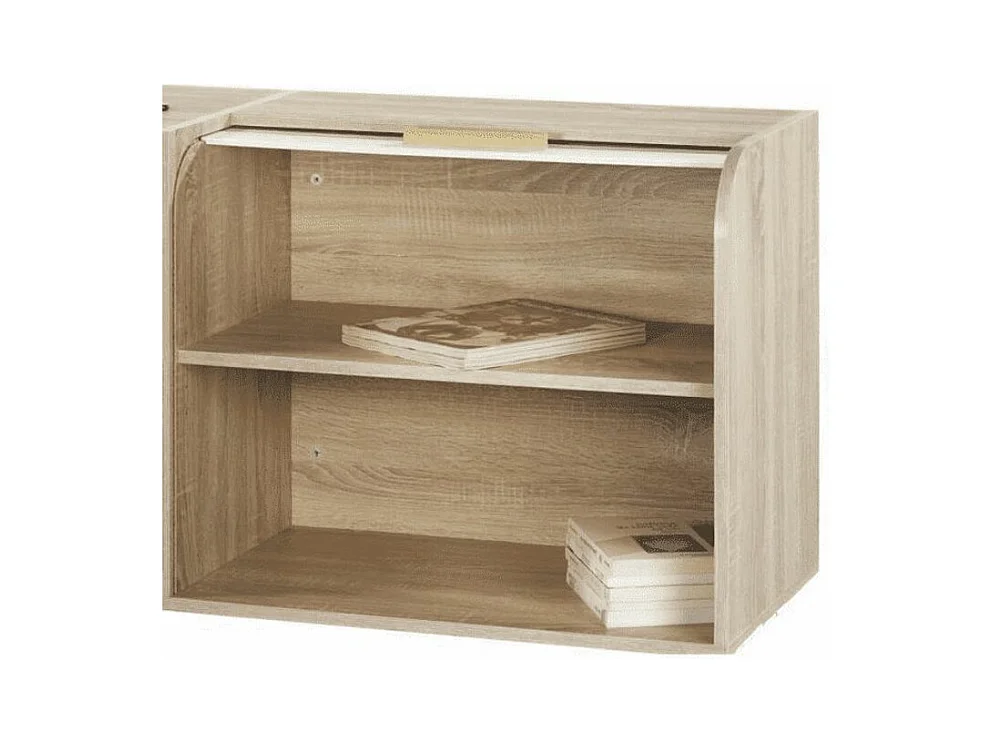 Meuble d'entrée chêne clair 3 tiroirs blanc 2 niches rideau blanc Happy 110cm