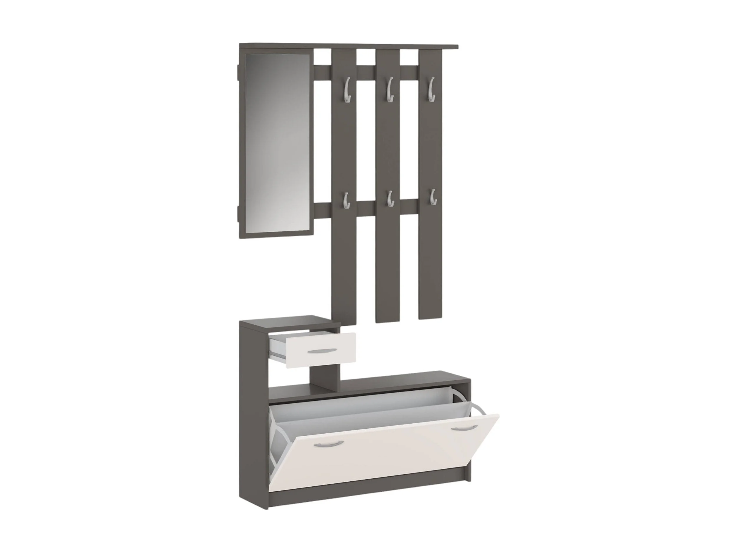 Meuble d'entrée Dbiagin, Entrée moderne, Armoire avec étagère à chaussures, Armoire polyvalente avec miroir et cintre, 100x25h180 cm, Anthracite et Blanc