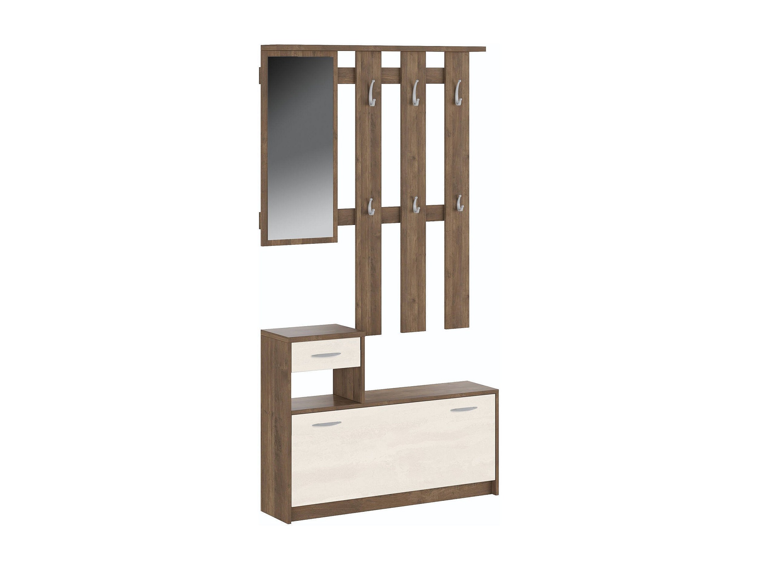 Meuble d'entrée Clint, Entrée moderne, Armoire avec étagère à chaussures, Armoire polyvalente avec miroir et cintre, 100x25h180 cm, Chêne et Blanc