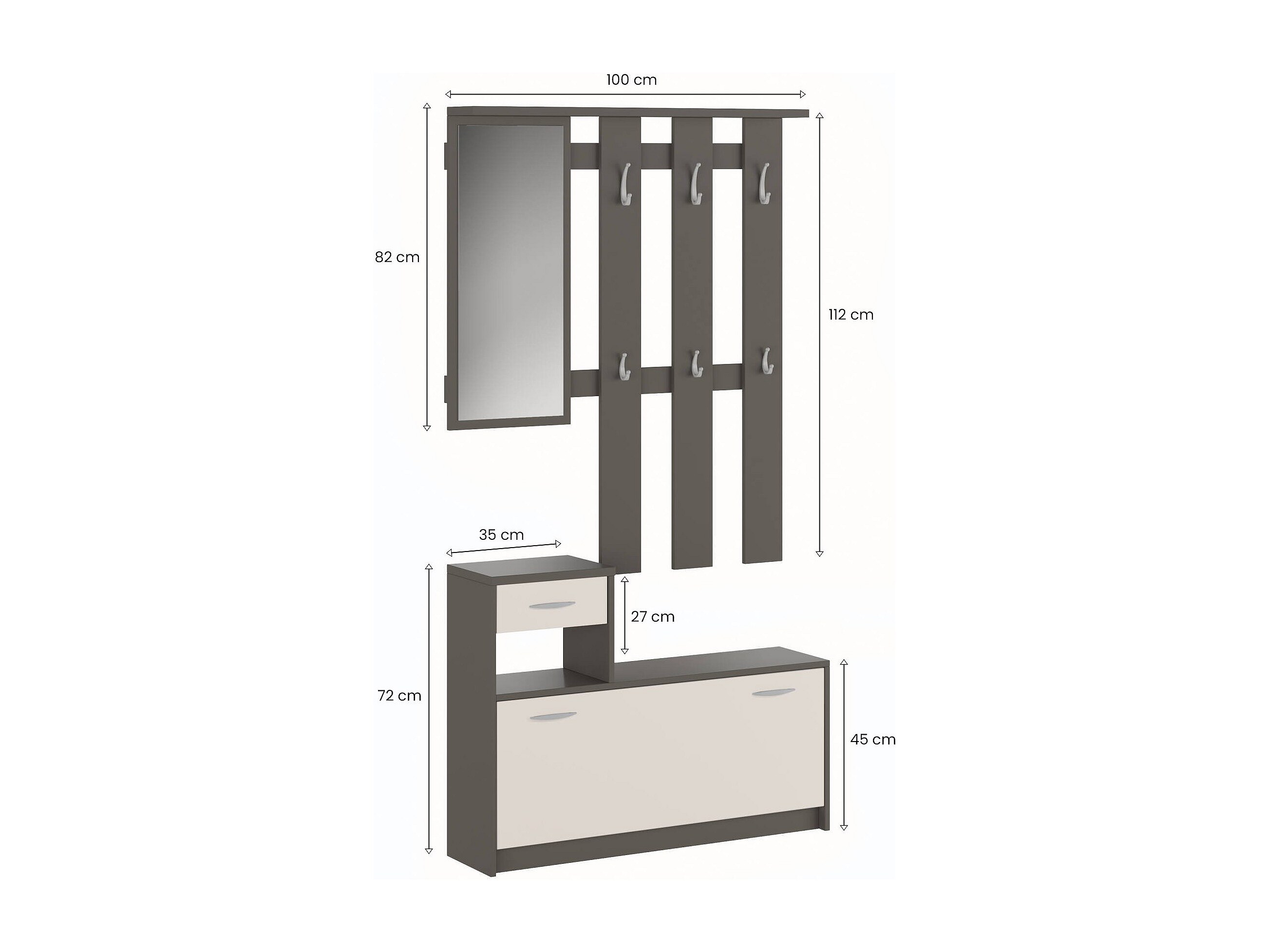 Meuble d'entrée Dbiagin, Entrée moderne, Armoire avec étagère à chaussures, Armoire polyvalente avec miroir et cintre, 100x25h180 cm, Anthracite et Blanc
