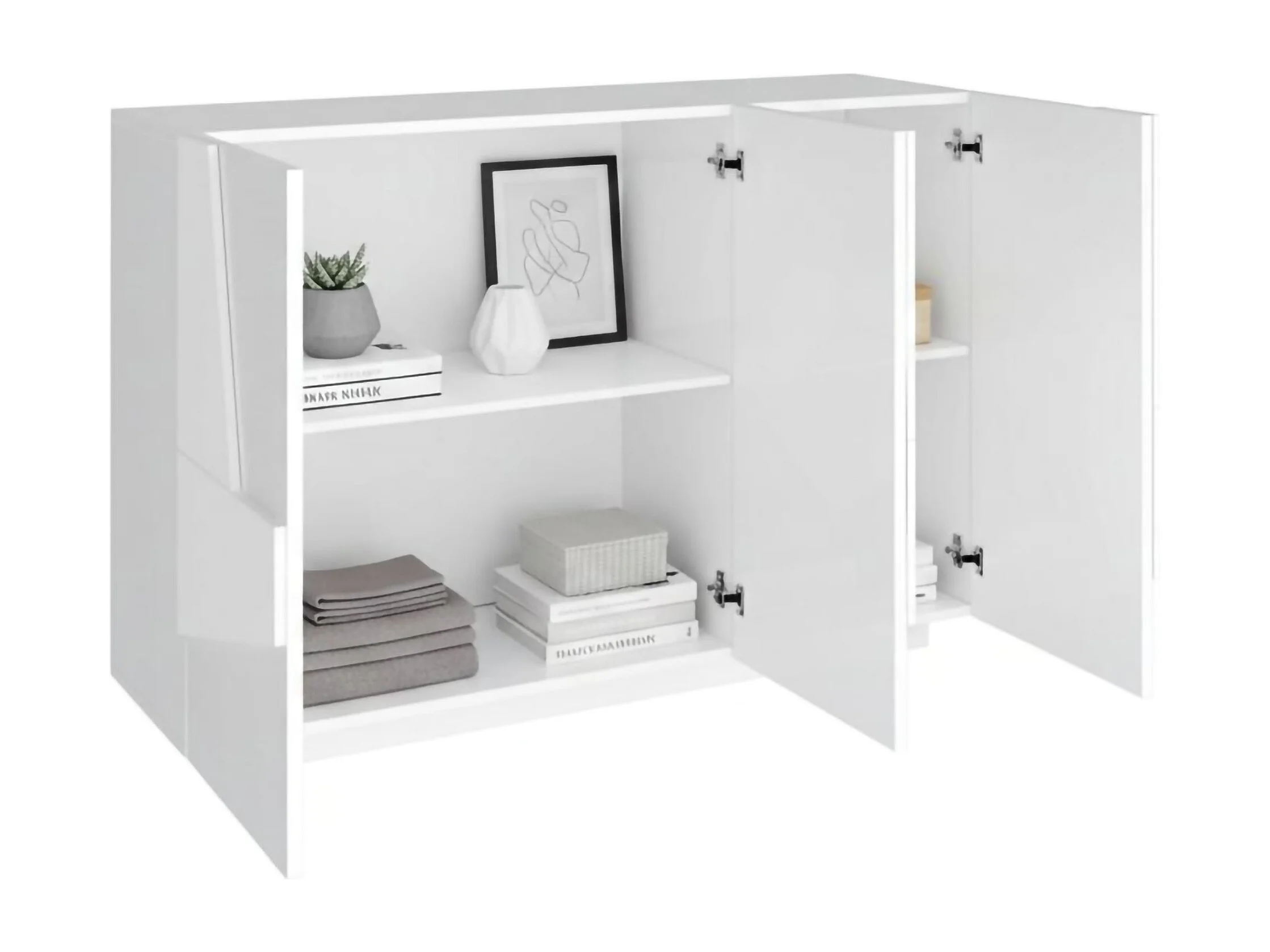 Buffet Dcircat, Buffet de salon multifonction, Buffet de salon 3 portes, 100% Made in Italy, 121x38h86 cm, Blanc brillant