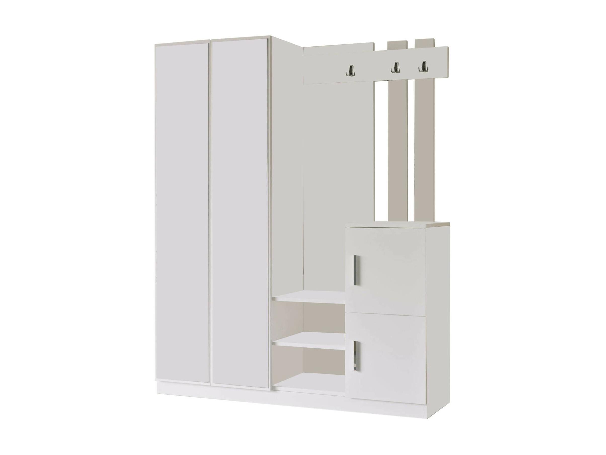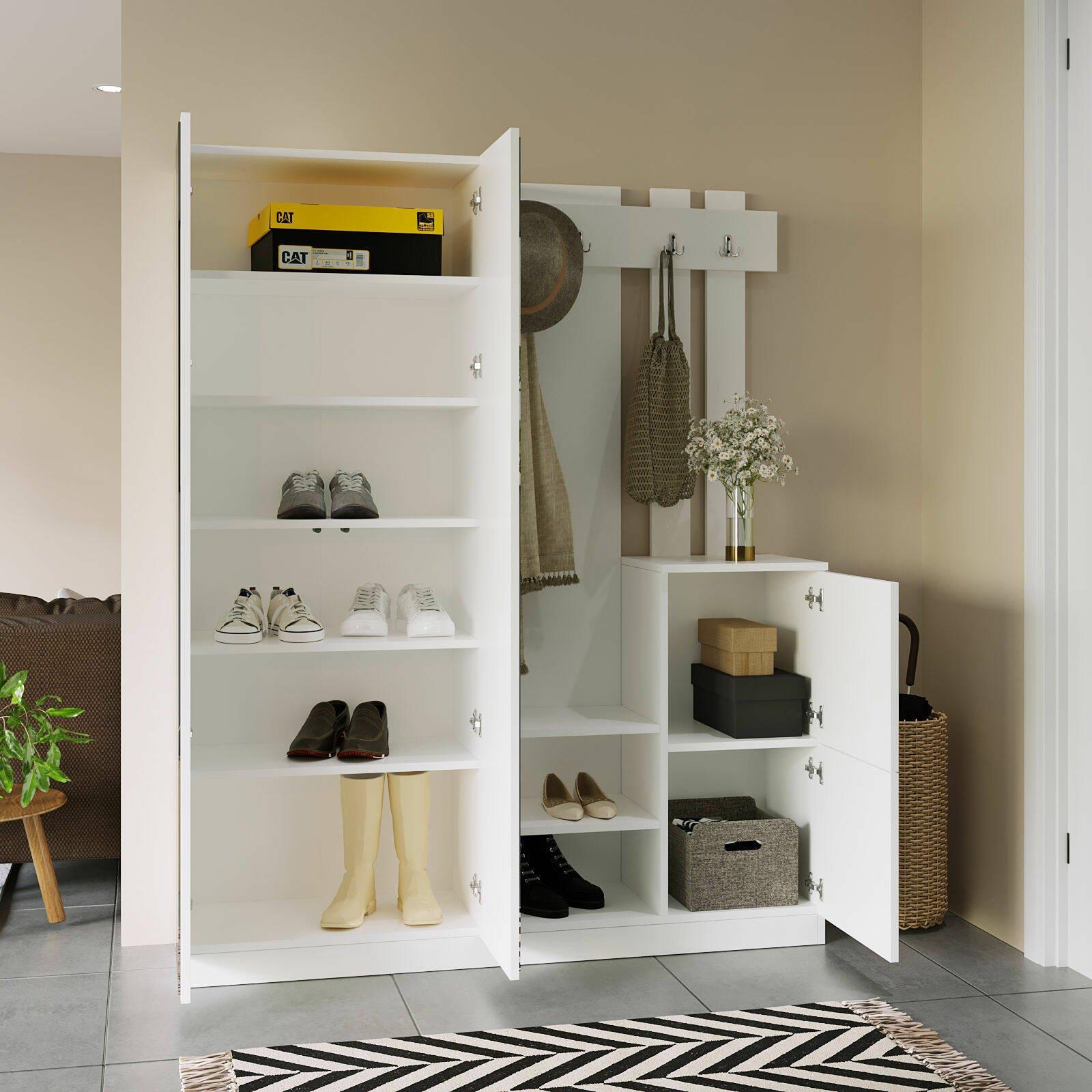 Meuble d'entrée Dgoldanig, Crochet d'entrée, Composition pour l'atrium, Console de rangement multifonction, 147x38 h180 cm, Blanc