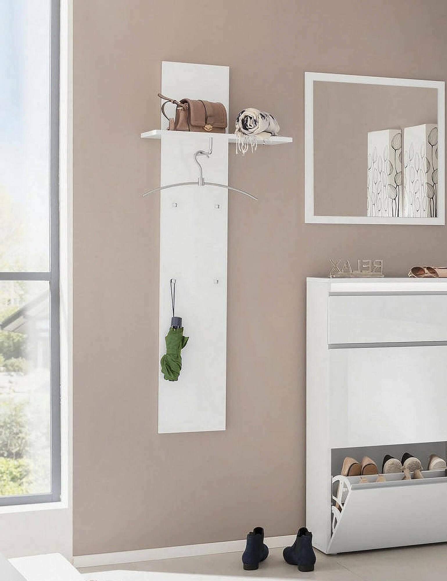 Mobilier d'entrée Dlentin, Entrée multifonction moderne, Casier polyvalent pour hall d'entrée, 100% Made in Italy, 50x27h140 cm, Blanc brillant