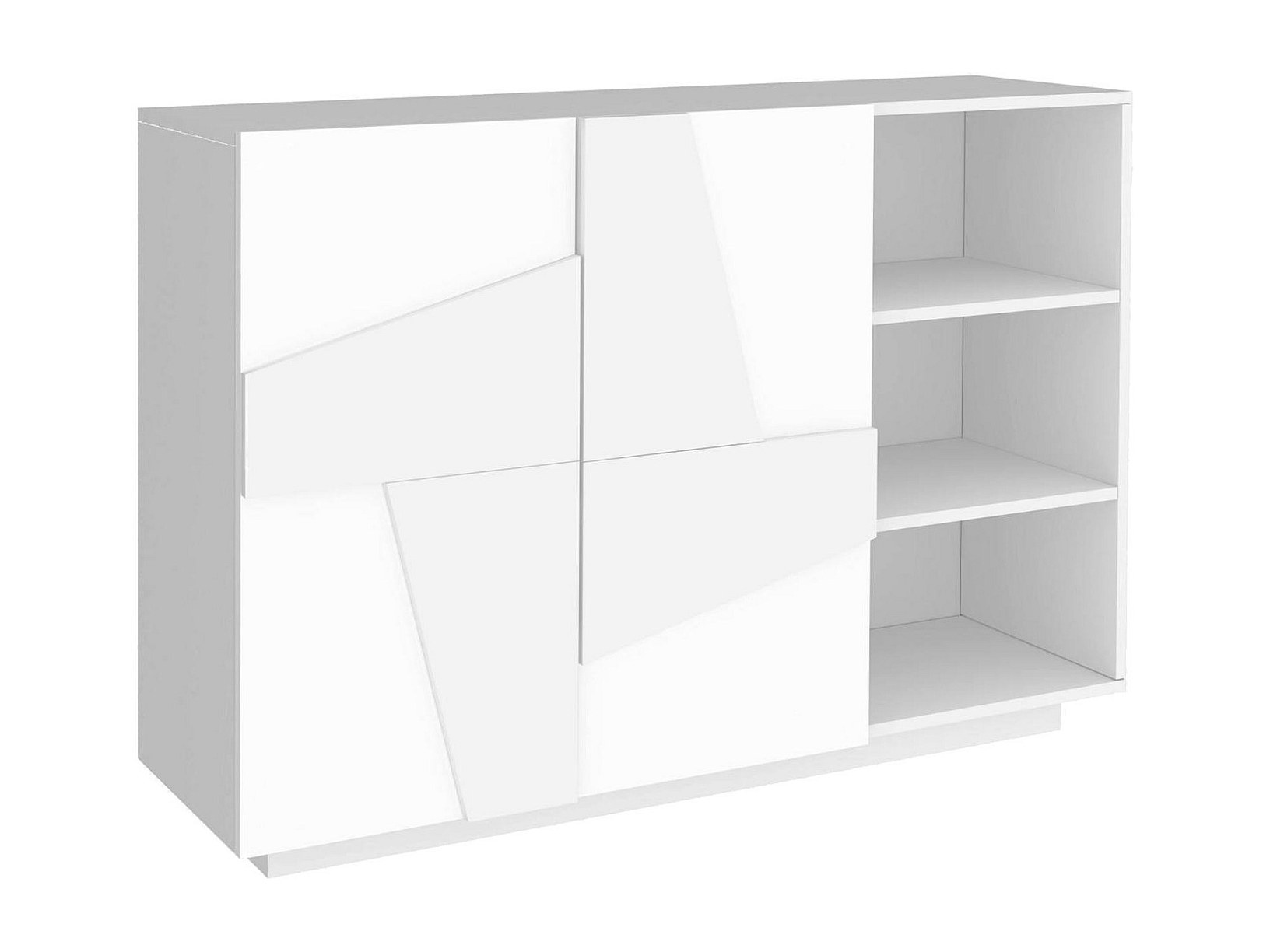Buffet Dlann, Buffet de cuisine avec 2 portes et 3 tiroirs, Buffet de salon, 100% Made in Italy, 143x44h86 cm, Blanc brillant