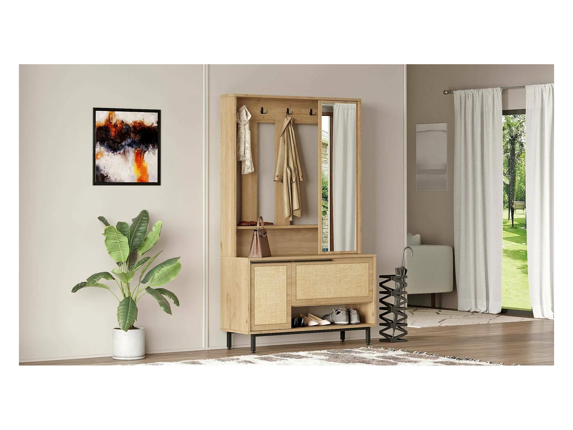 Meuble d'entrée Zephyr, Crochet d'entrée, Composition pour l'atrium, Console de rangement multifonction, 100x36h190 cm, Chêne
