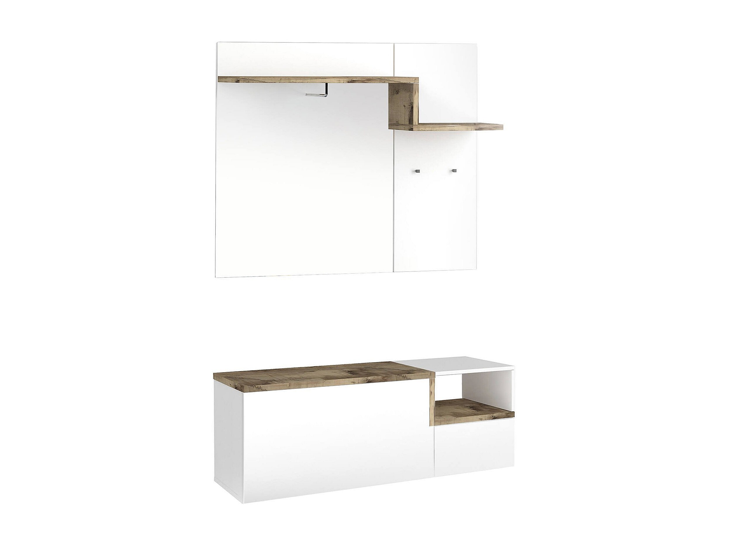 Meuble d'entrée Dodd, Entrée 2 portes, Armoire avec miroir, Rangement multifonctionnel, 77x24h91 cm, Blanc et Chêne