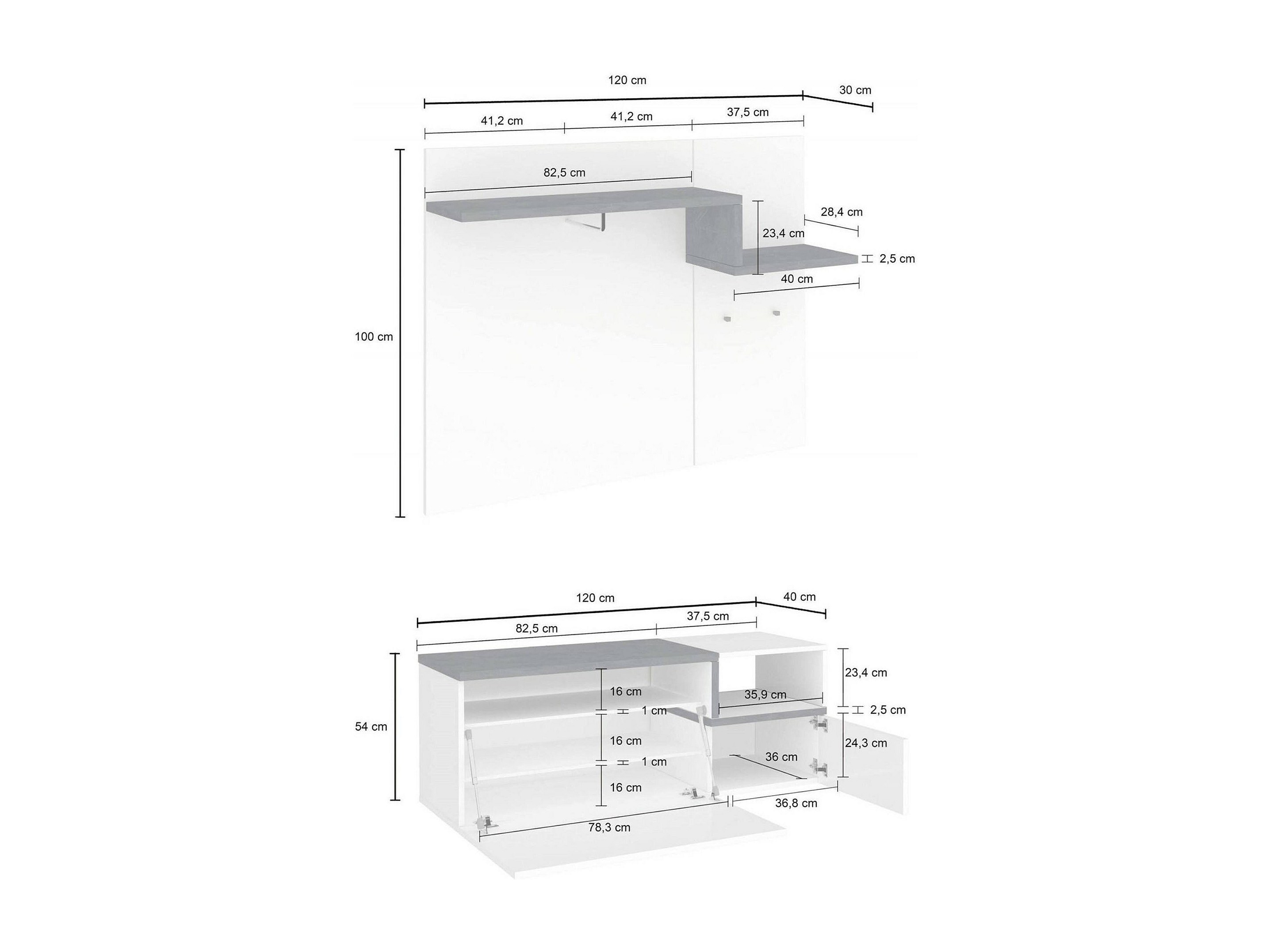 Meuble d'entrée Dgiuglian, Crochet d'entrée, Composition pour l'atrium, Console de rangement multifonction, 114x35 h180 cm, Blanc