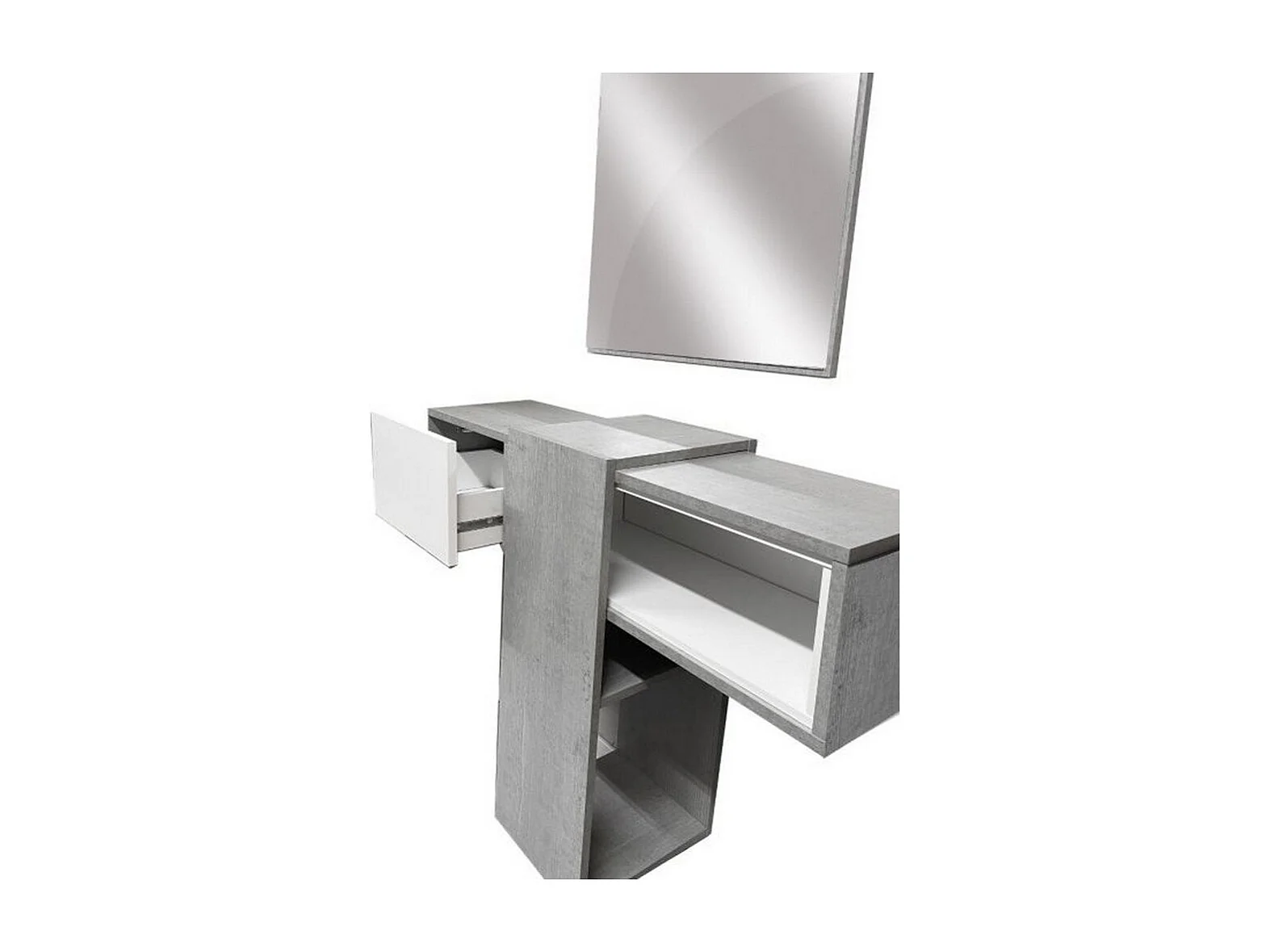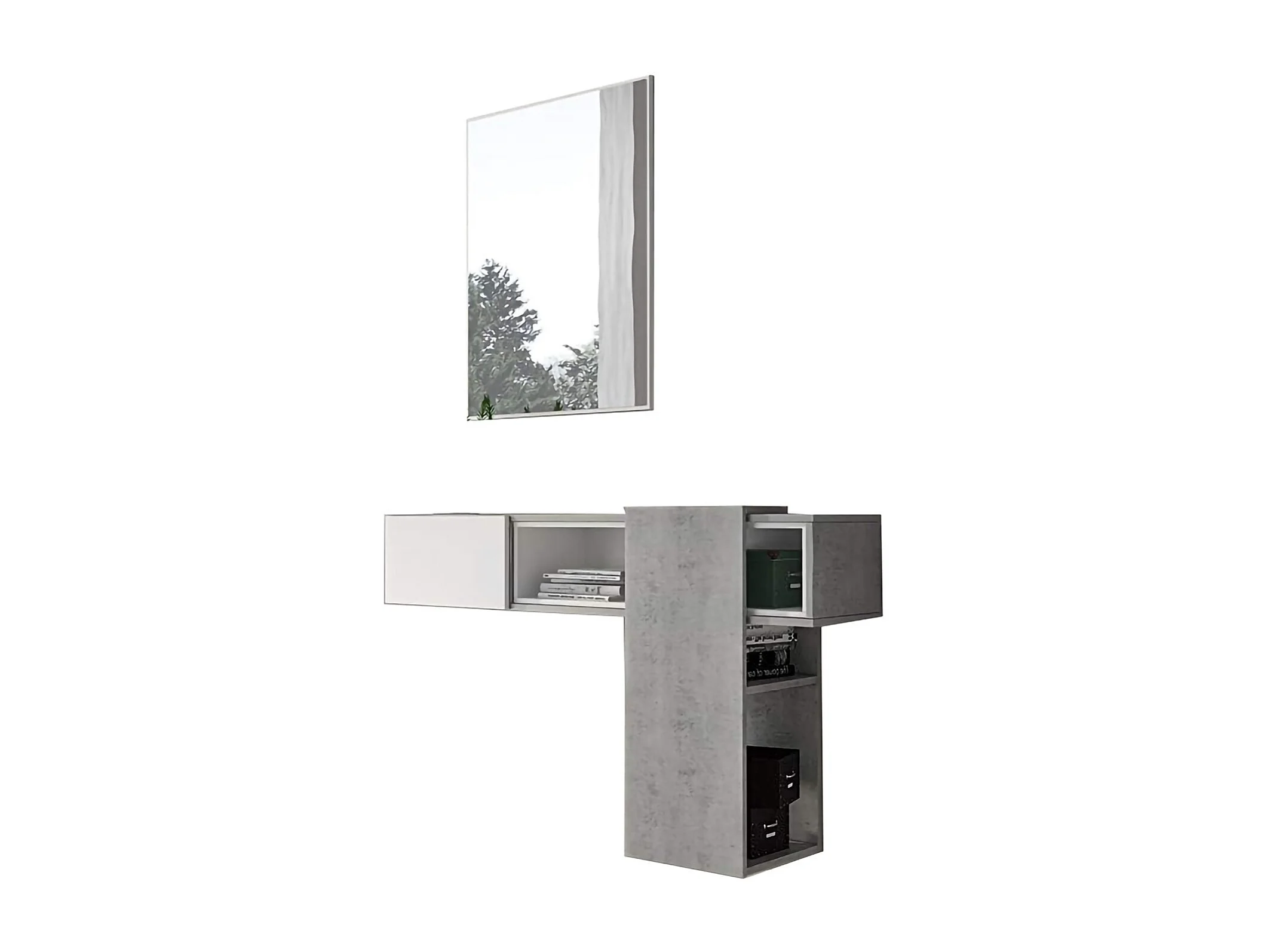 Dmora Meuble d'entrée avec miroir, entrée pour hall avec tiroir, Vide-poche pour petits appartements, cm 100x27h155, couleur Ciment et Blanc