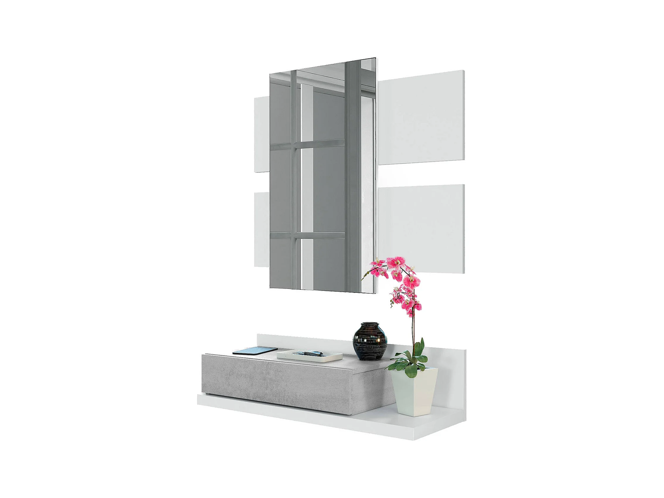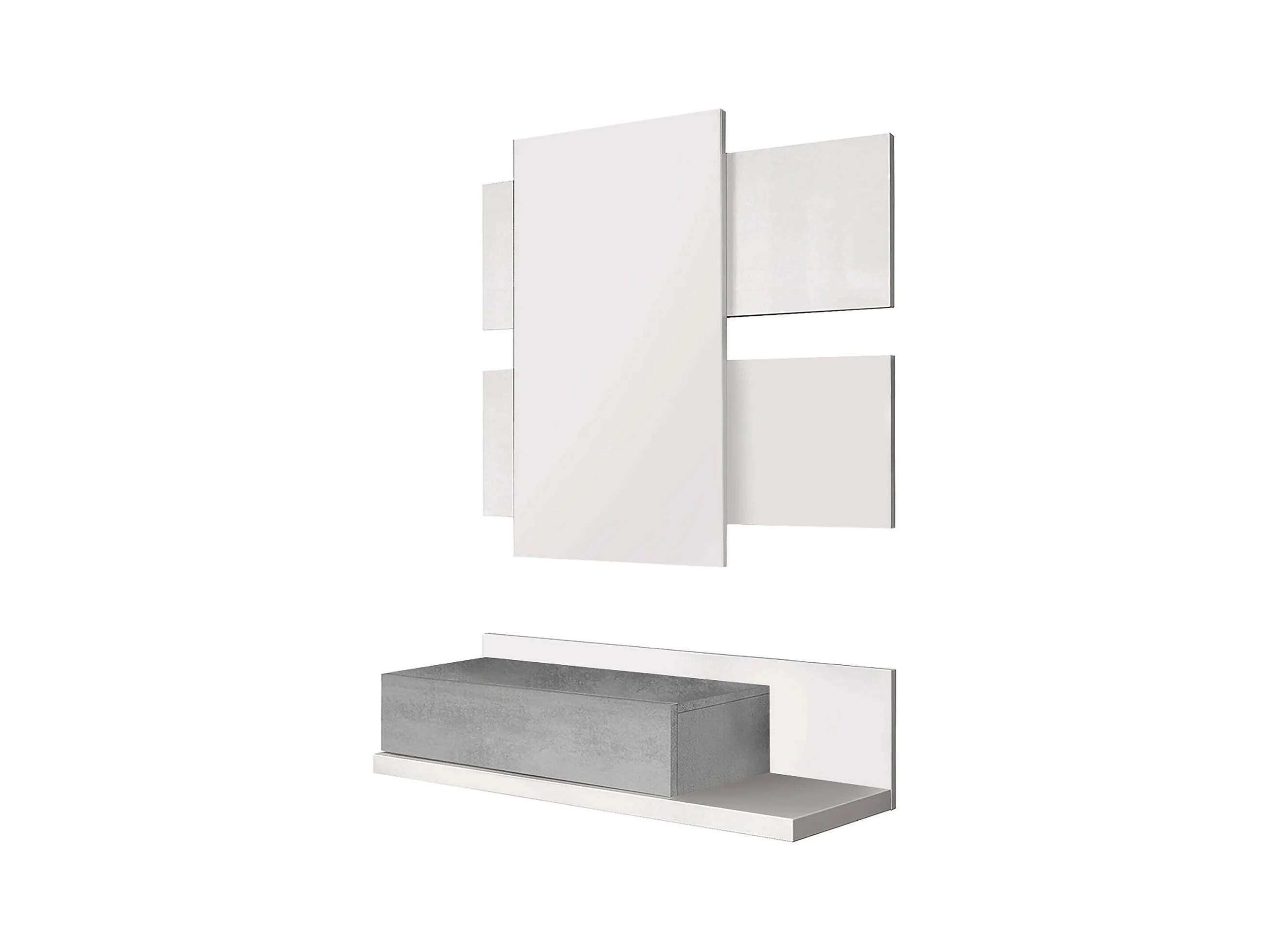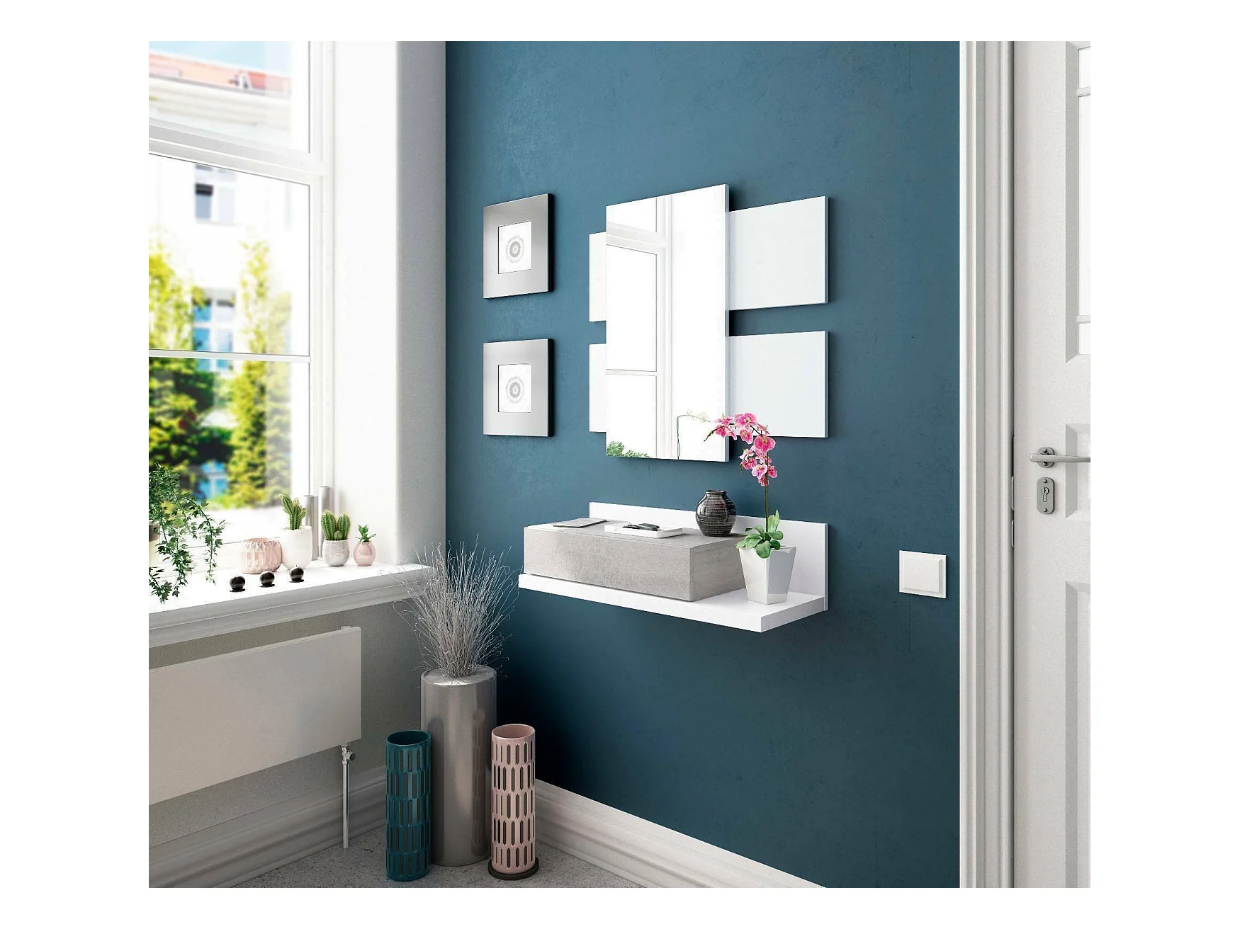 Meuble d'entrée Erie, entrée suspendue avec miroir, meuble avec tiroir pour entrée, 75x29h90 cm, Blanc et Ciment