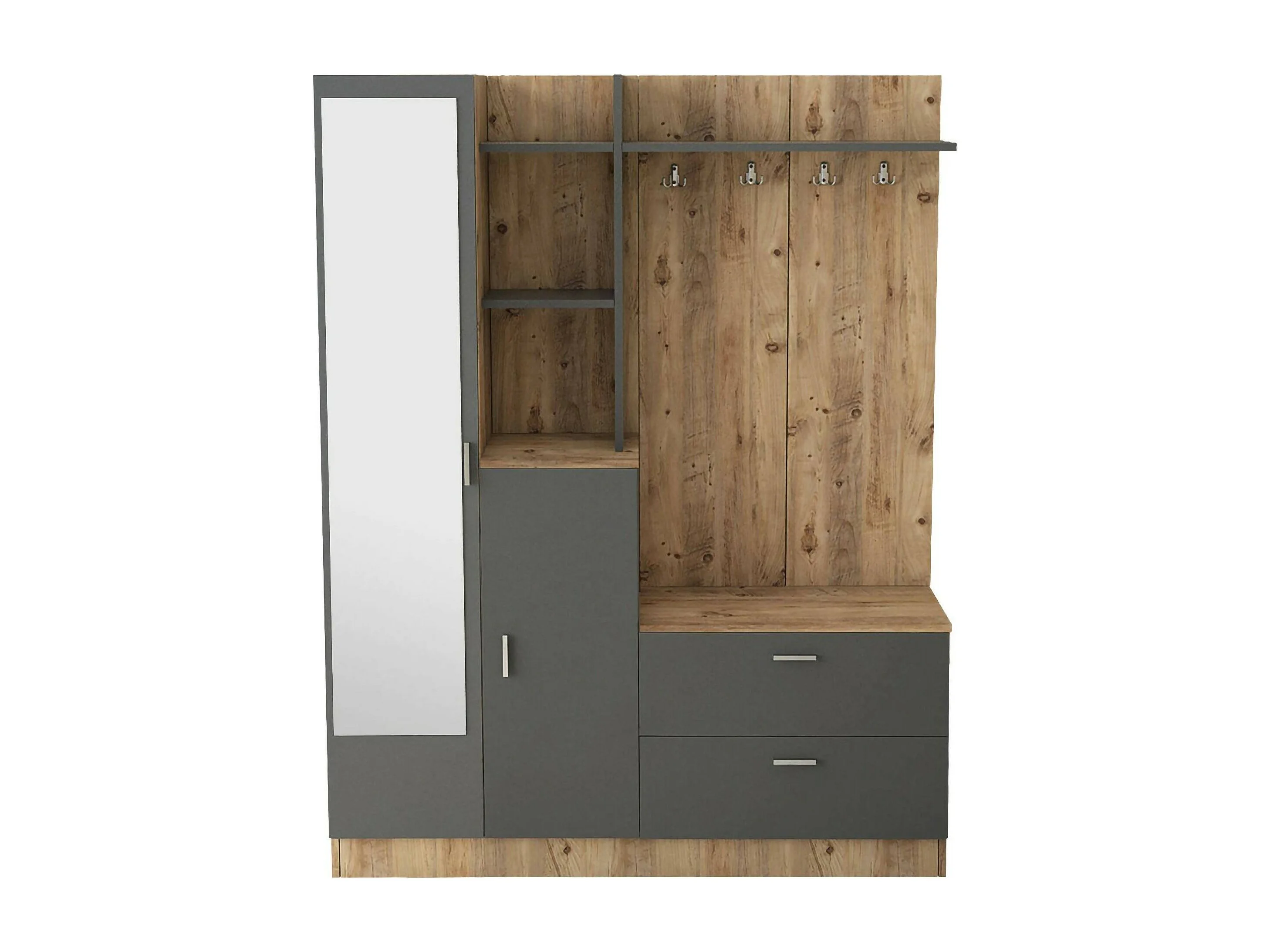 Meuble d'entrée Homam, Crochet d'entrée, Composition pour l'atrium, Console de rangement multifonction, 140x37h182 cm, Chêne et Anthracite