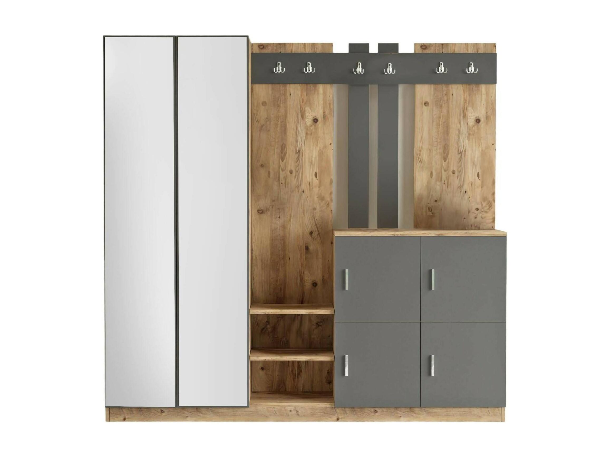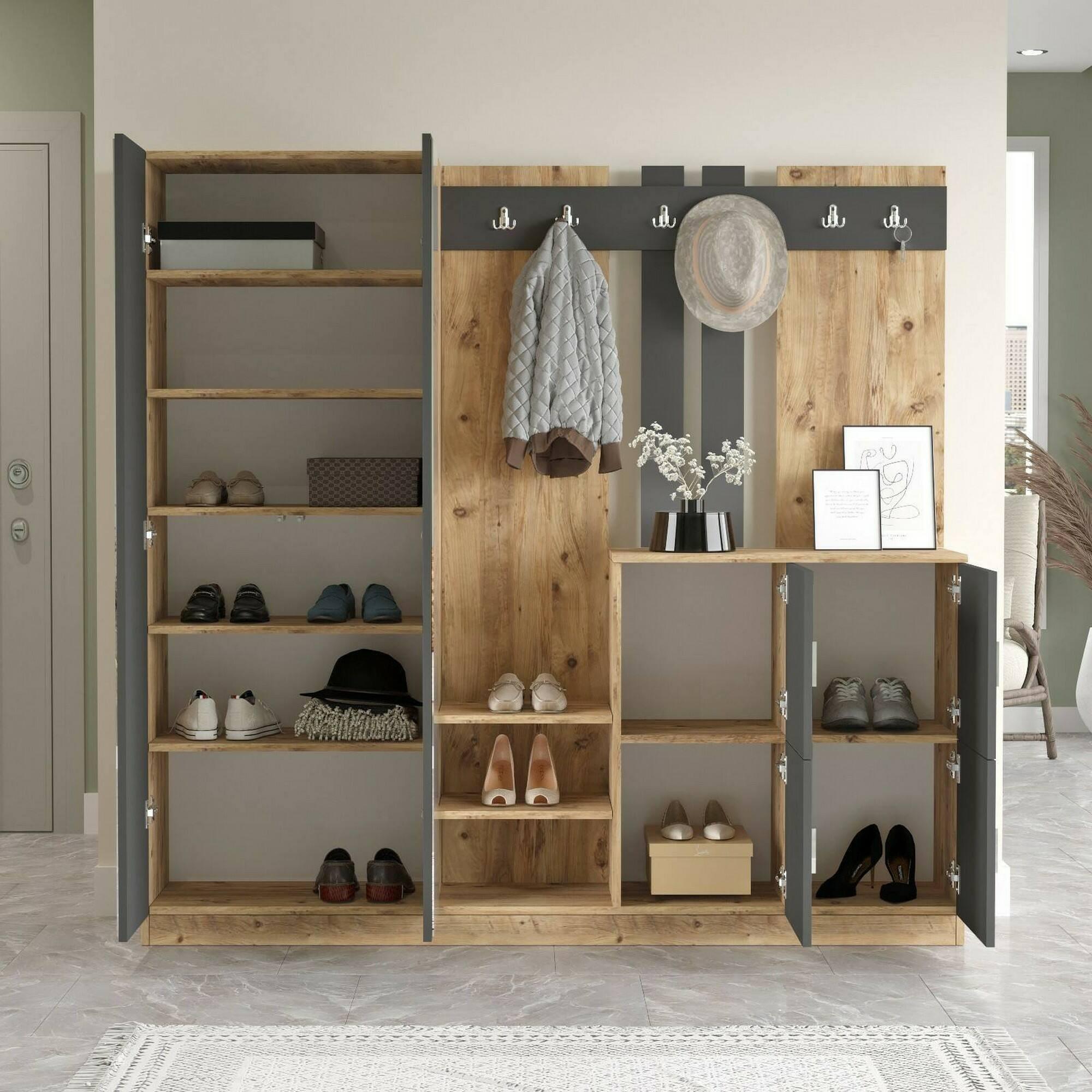 MEUBLE D'ENTRÉE - Crochet d'entrée, Composition pour l'atrium, Console de rangement multifonction, 187x38h180 cm, Chêne et Anthracite.
