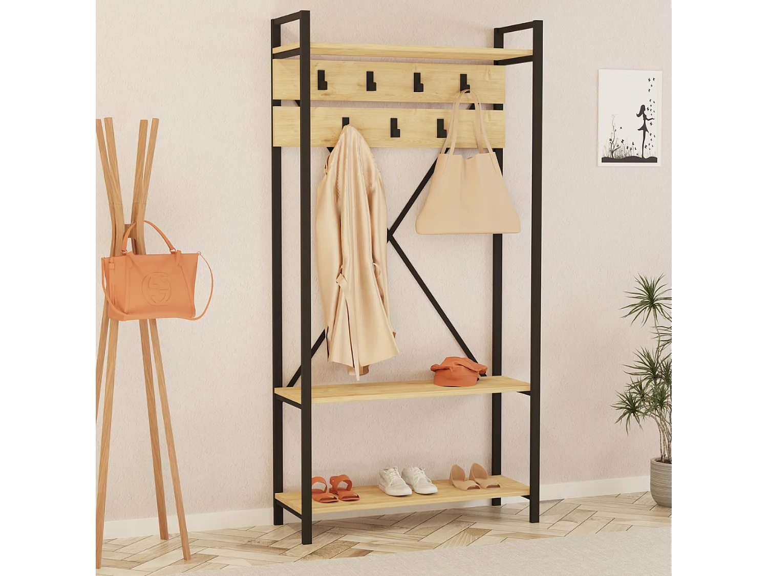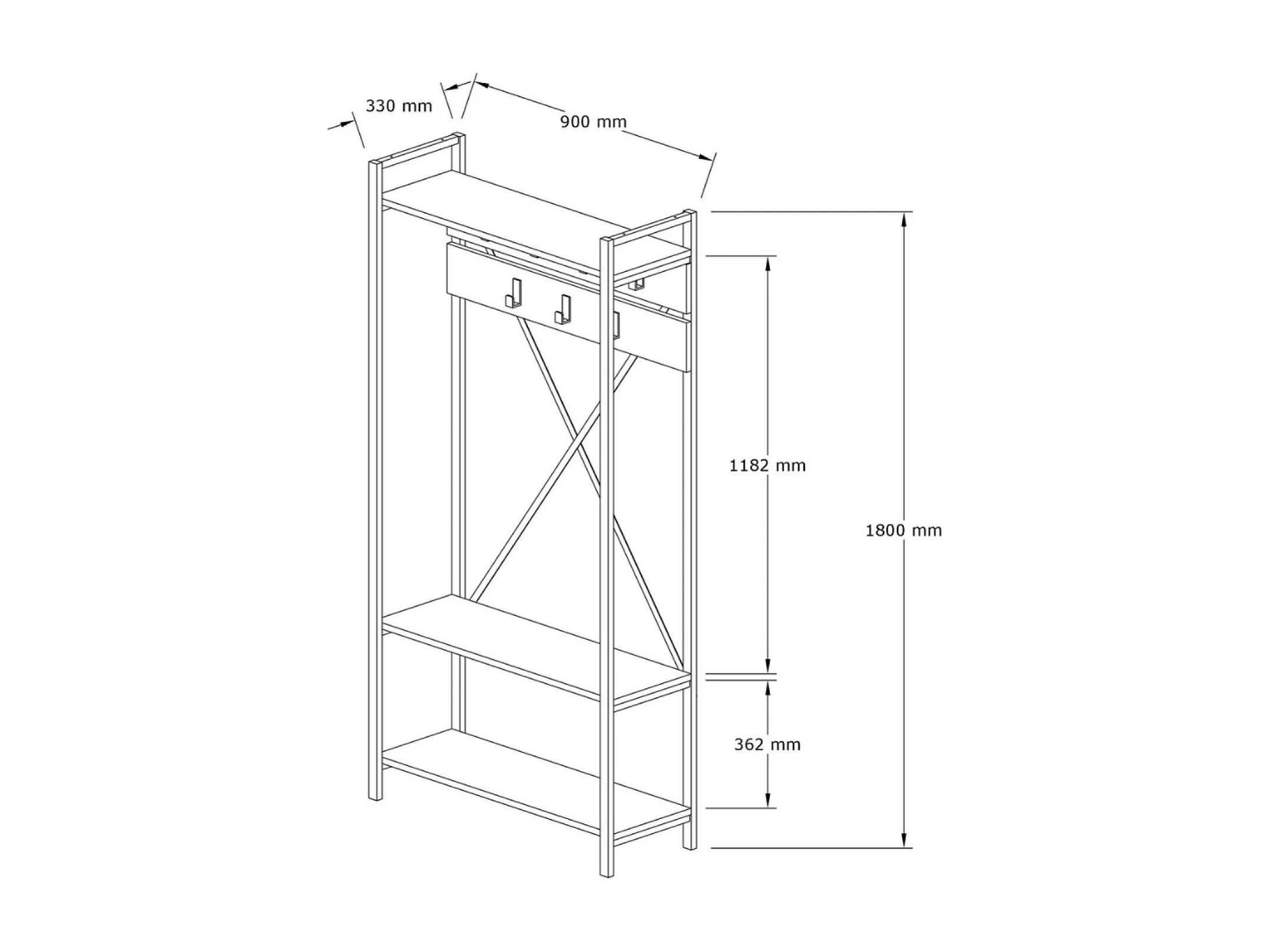 Meuble d'entrée style industriel avec étagères et porte-manteaux LUBIN