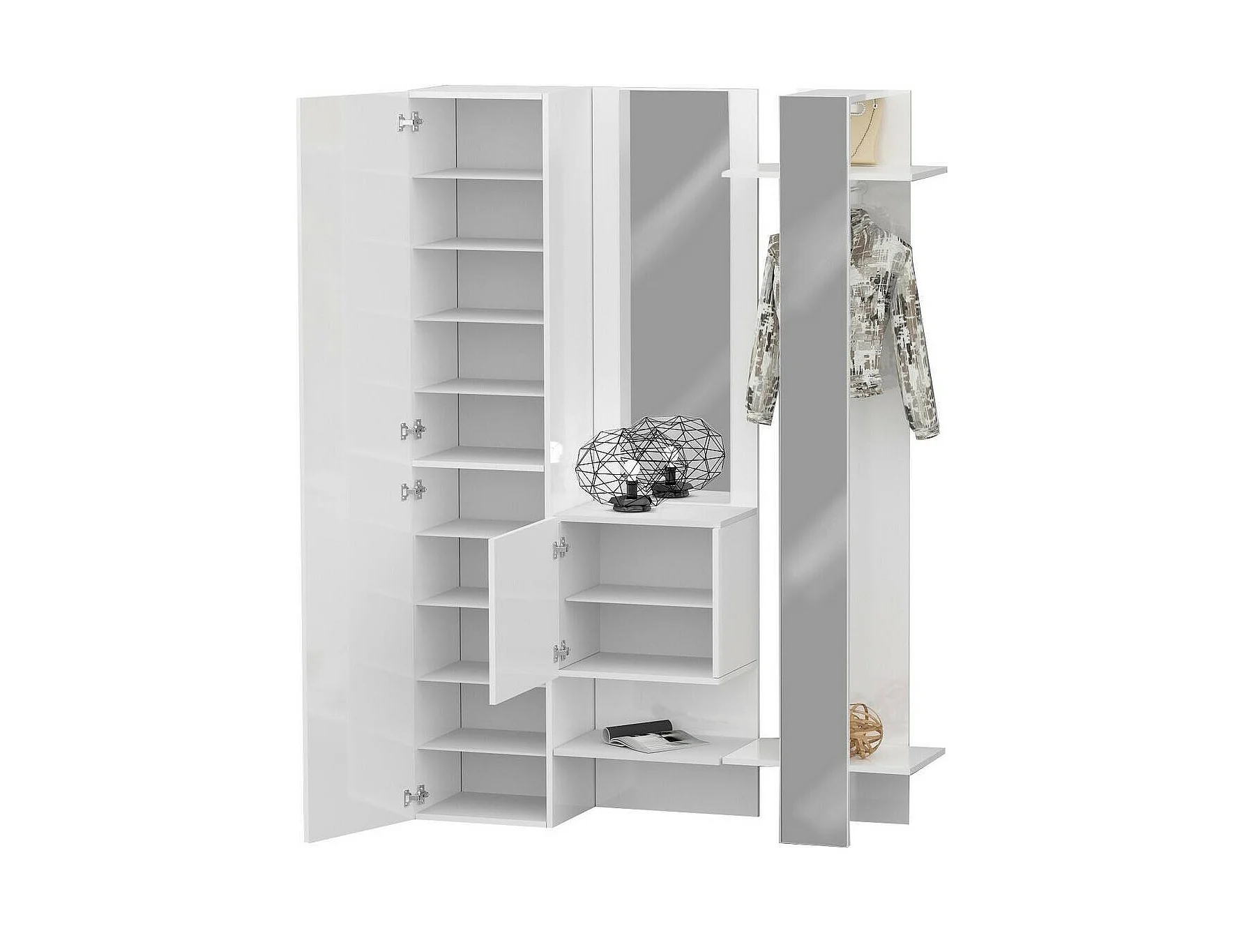Meuble d'entrée Vilmaro, Armoire multifonctionnelle avec 2 portes, Cintre mural avec 2 miroirs, 140x35h190 cm, Blanc